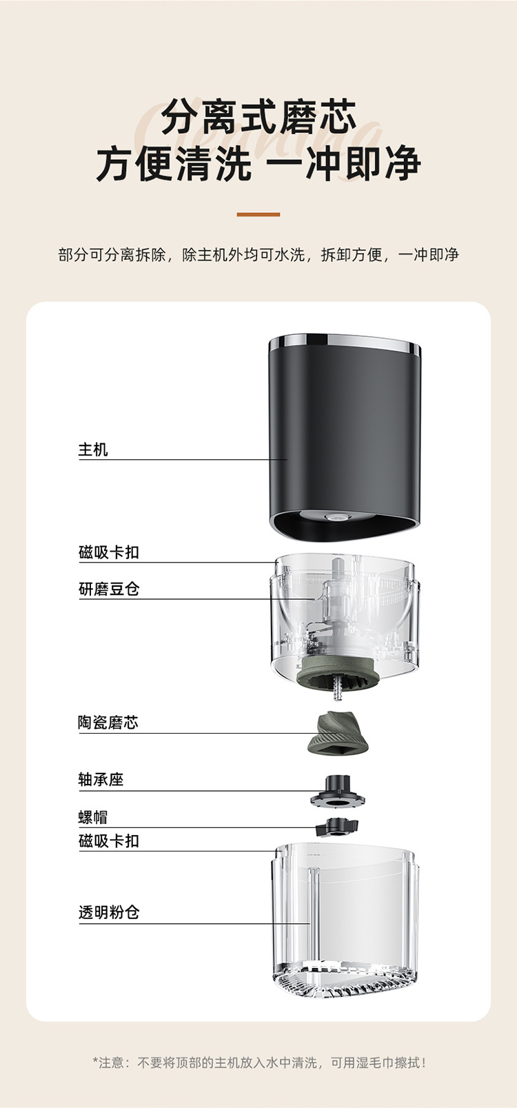 跨境便携式电动磨豆咖啡机USB充电咖啡磨便携无线全自动粗细可调
