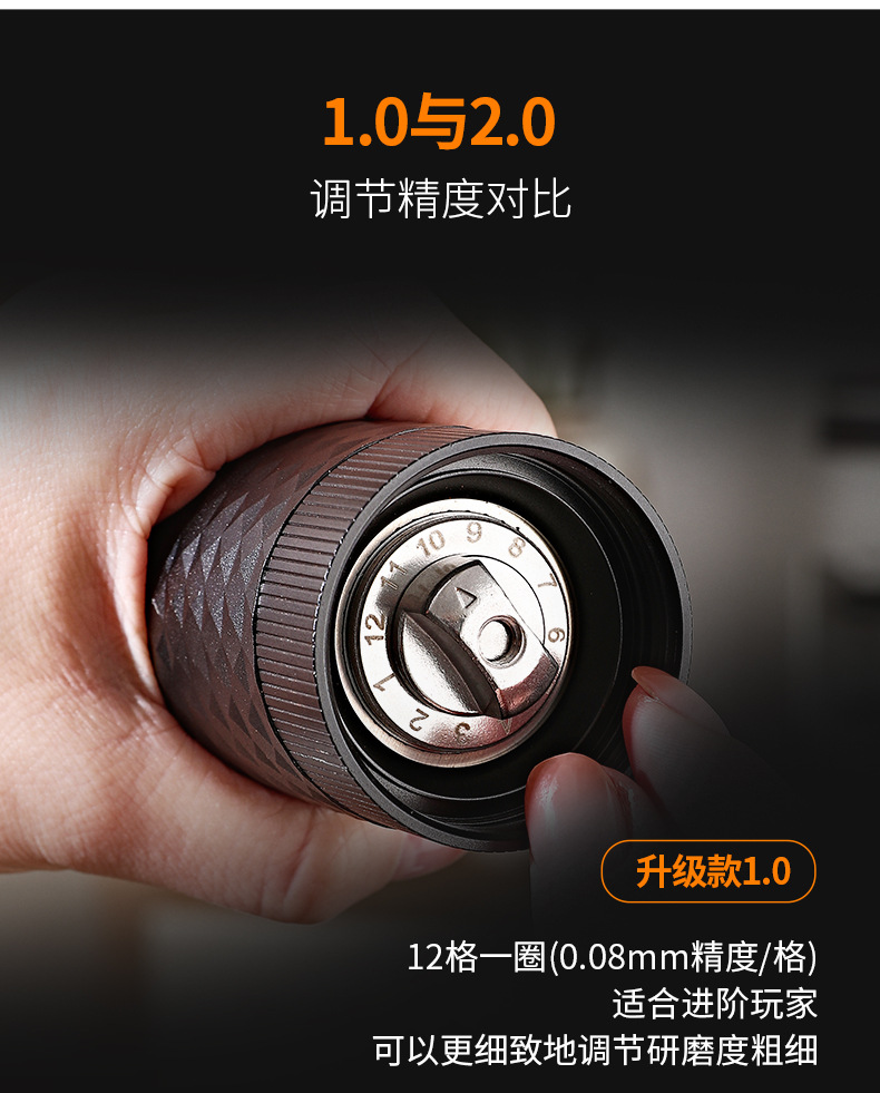 跨境手摇磨豆机2.0钻石咖啡豆研磨手动磨粉研磨器手磨机7角咖啡机
