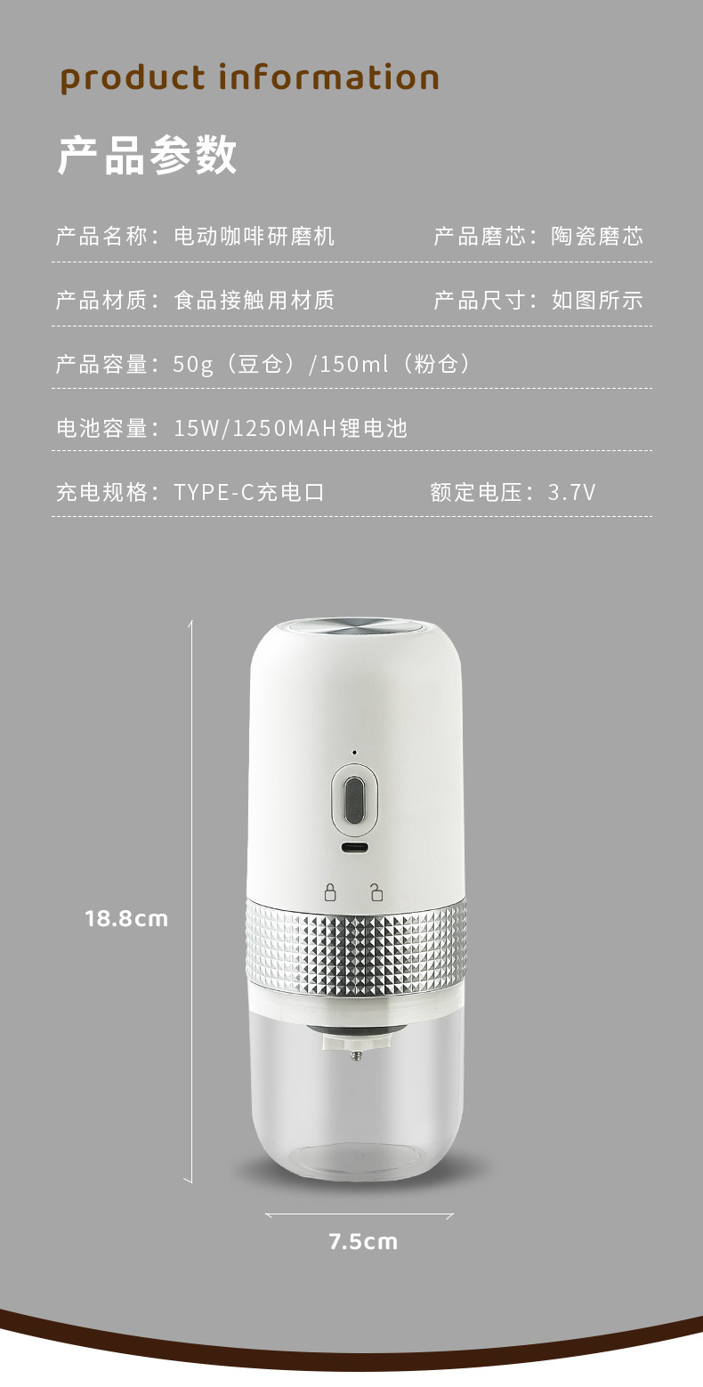 电动咖啡磨豆机家用小型自动磨咖啡机手磨充电便携意式电动研磨机