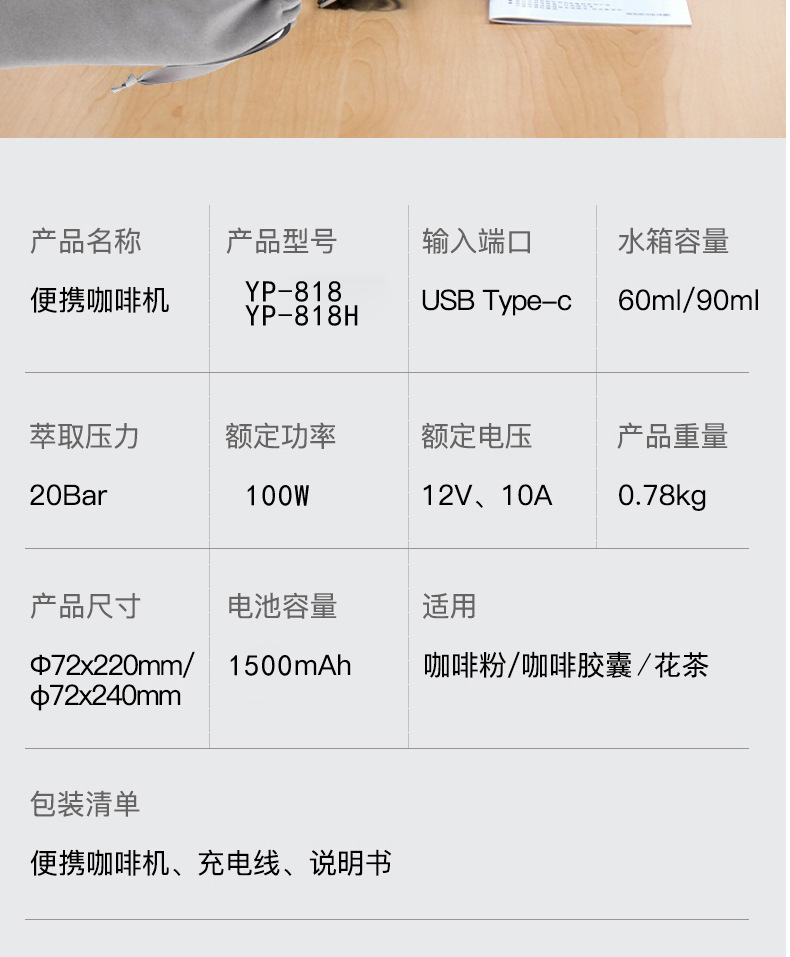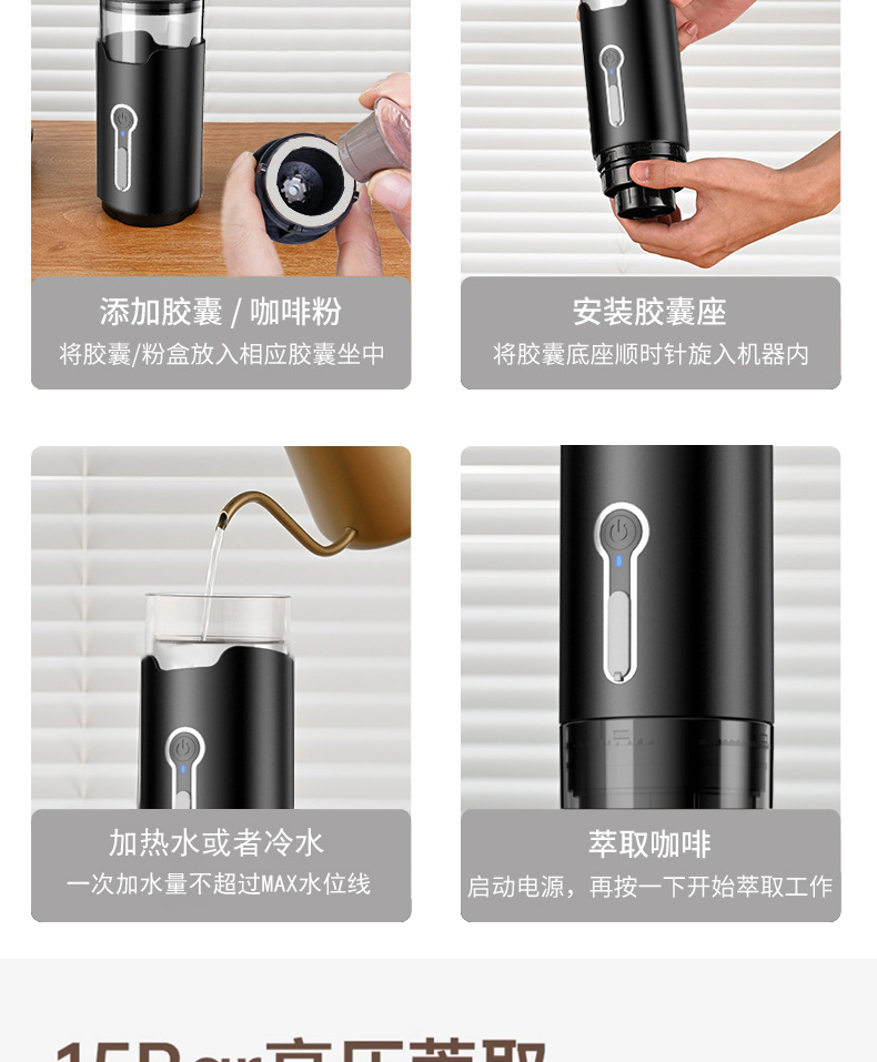 便携式无线咖啡机美意式浓缩胶囊家用自动小型户外可充电手持跨境