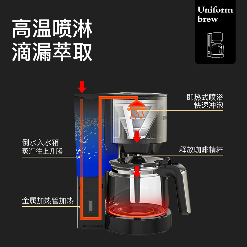 HOMEZEST CM1300B跨境专供不锈钢泡茶机量家用美式滴漏咖啡机