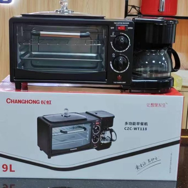 外贸出口三合一早餐机多功能多士炉迷你面包机家用小型烤箱咖啡机