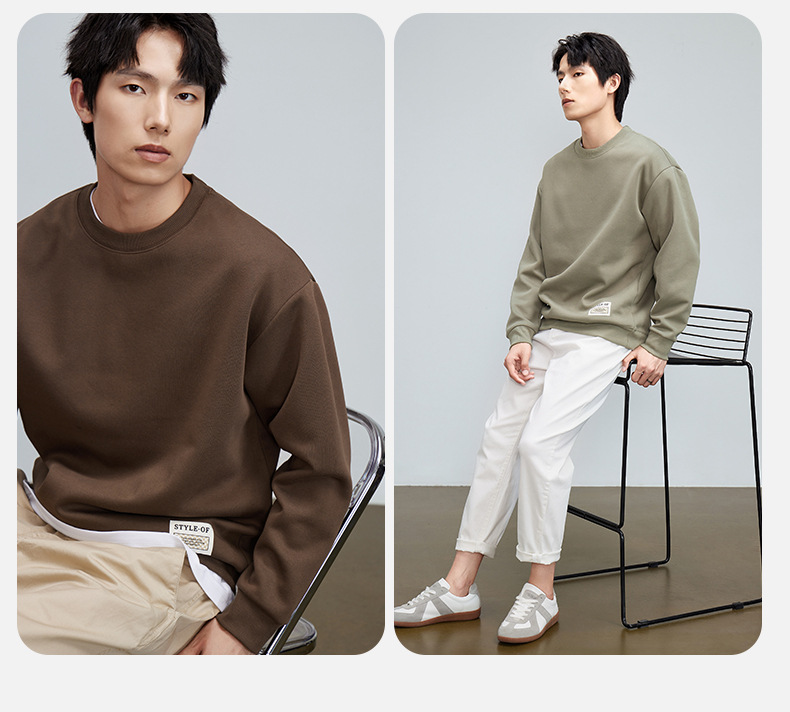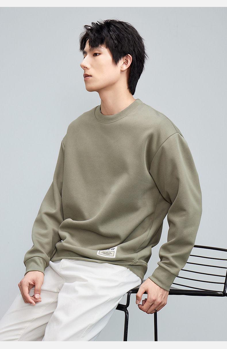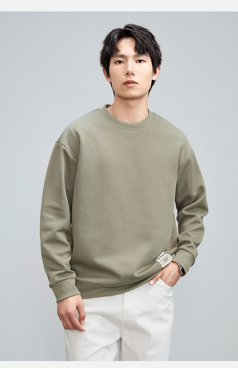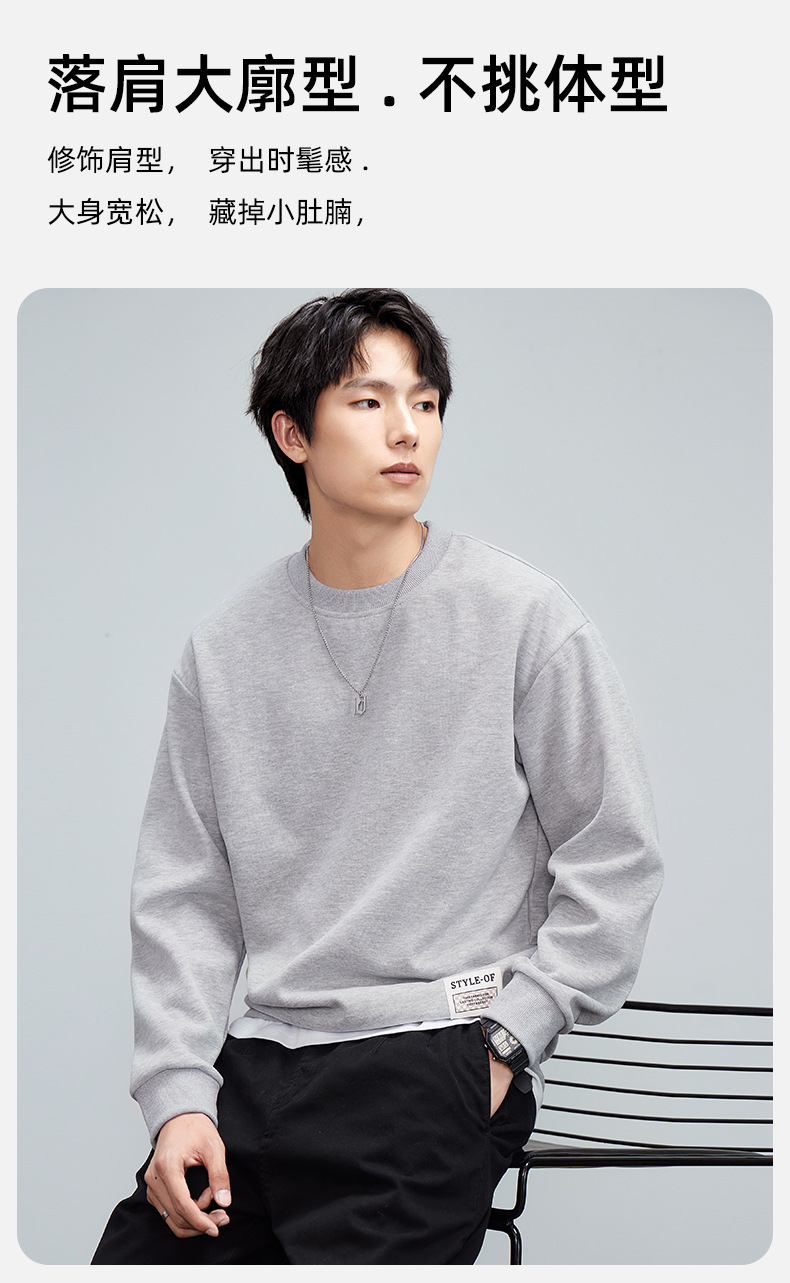 重磅圆领男士卫衣日系简约衣服2024春季宽松打底衫加绒加厚长袖T