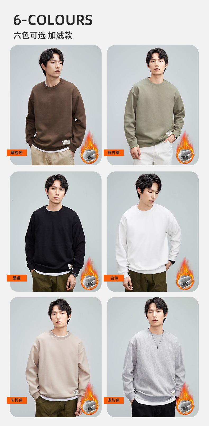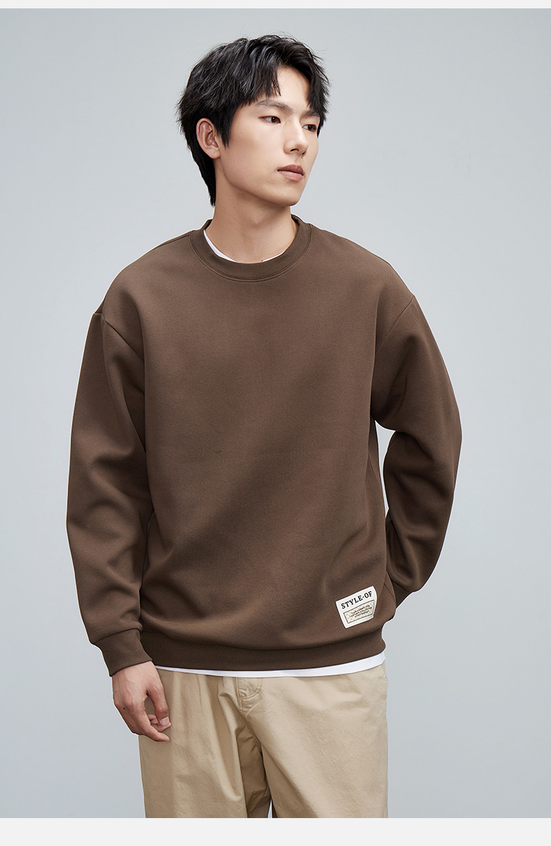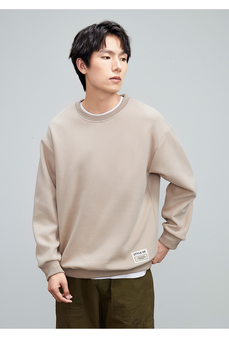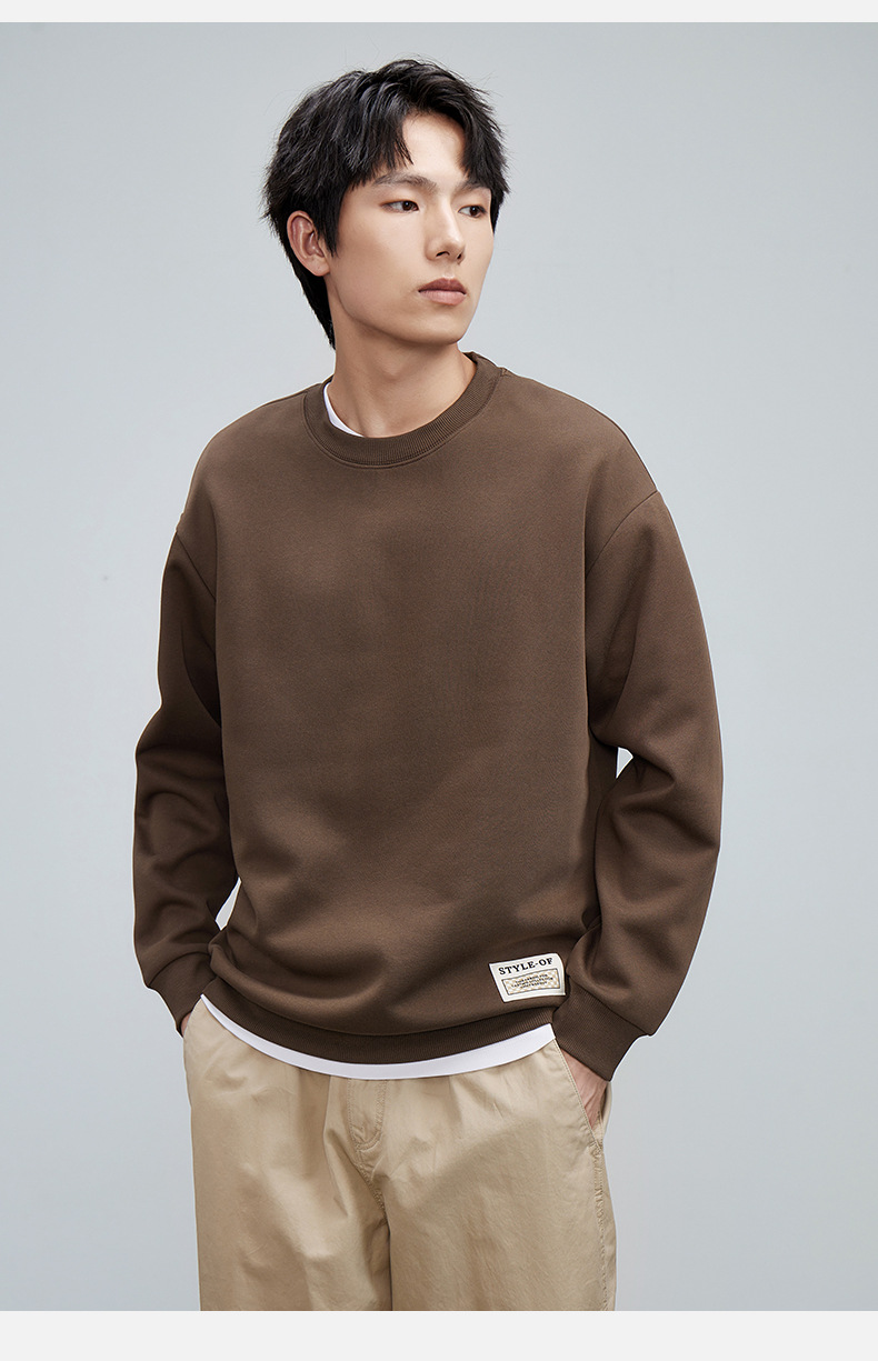 重磅圆领男士卫衣日系简约衣服2024春季宽松打底衫加绒加厚长袖T