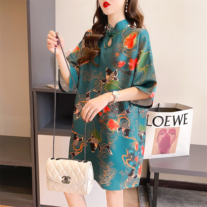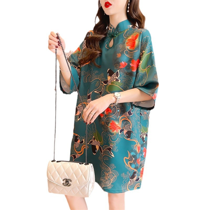 一件代发国潮改良旗袍日常年轻款少女中国风复古大码女装连衣裙女