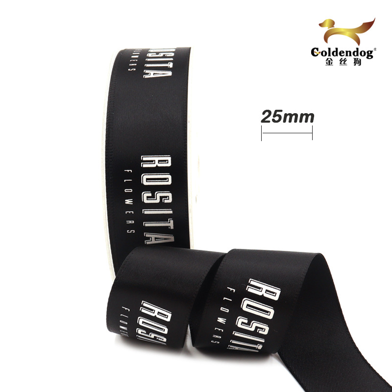厂家直销定制丝带印刷logo品质好牢度高缎带印刷logo批发