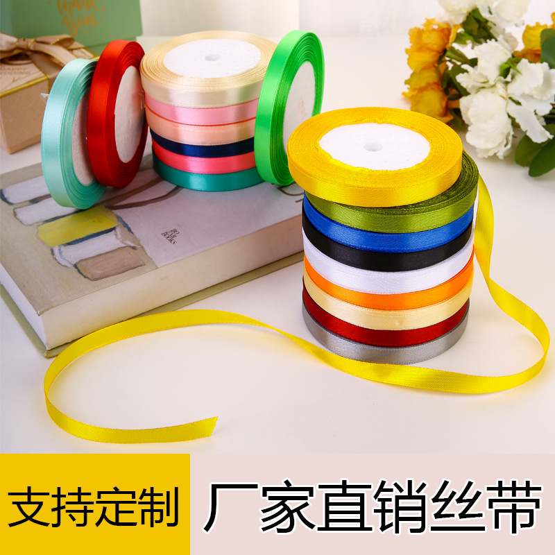厂家直销1cm鲜花礼盒包装涤纶色丁织带速卖通手工蝴蝶结丝带批发