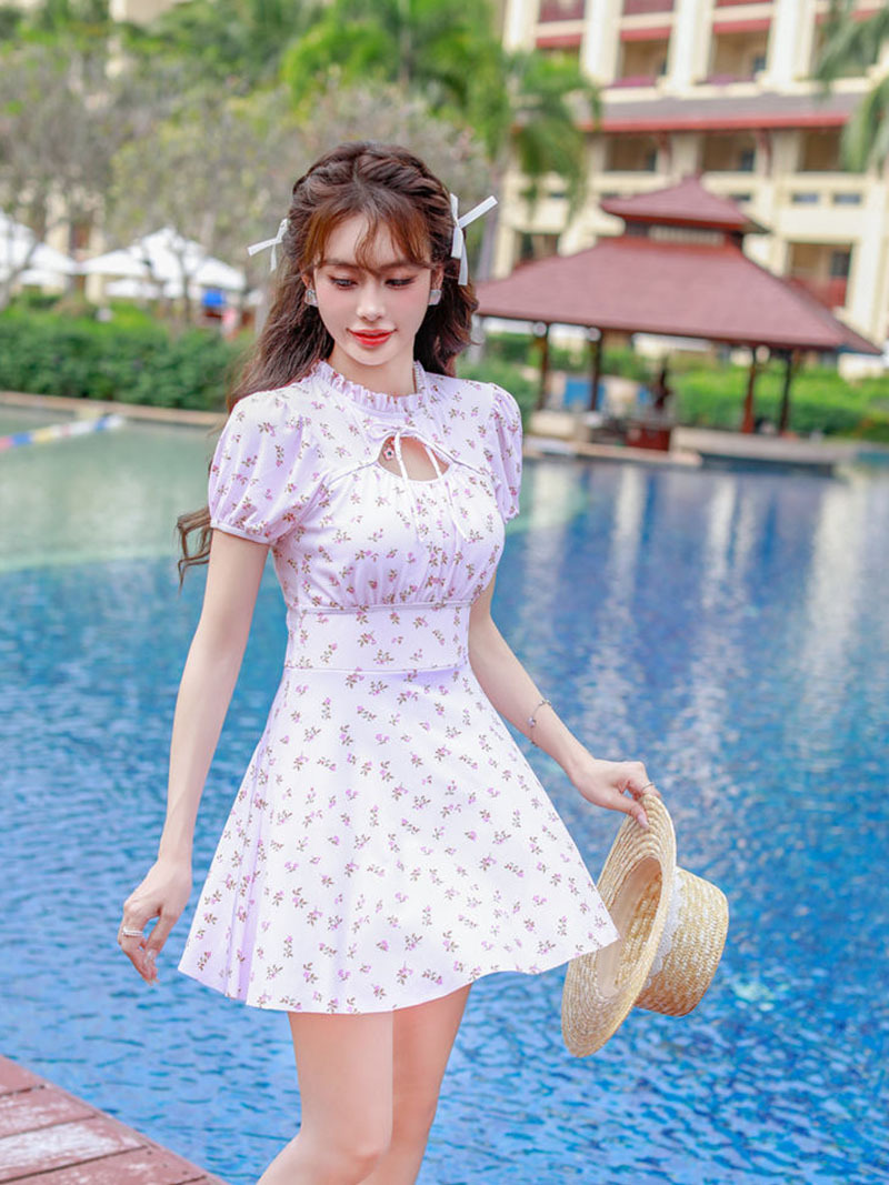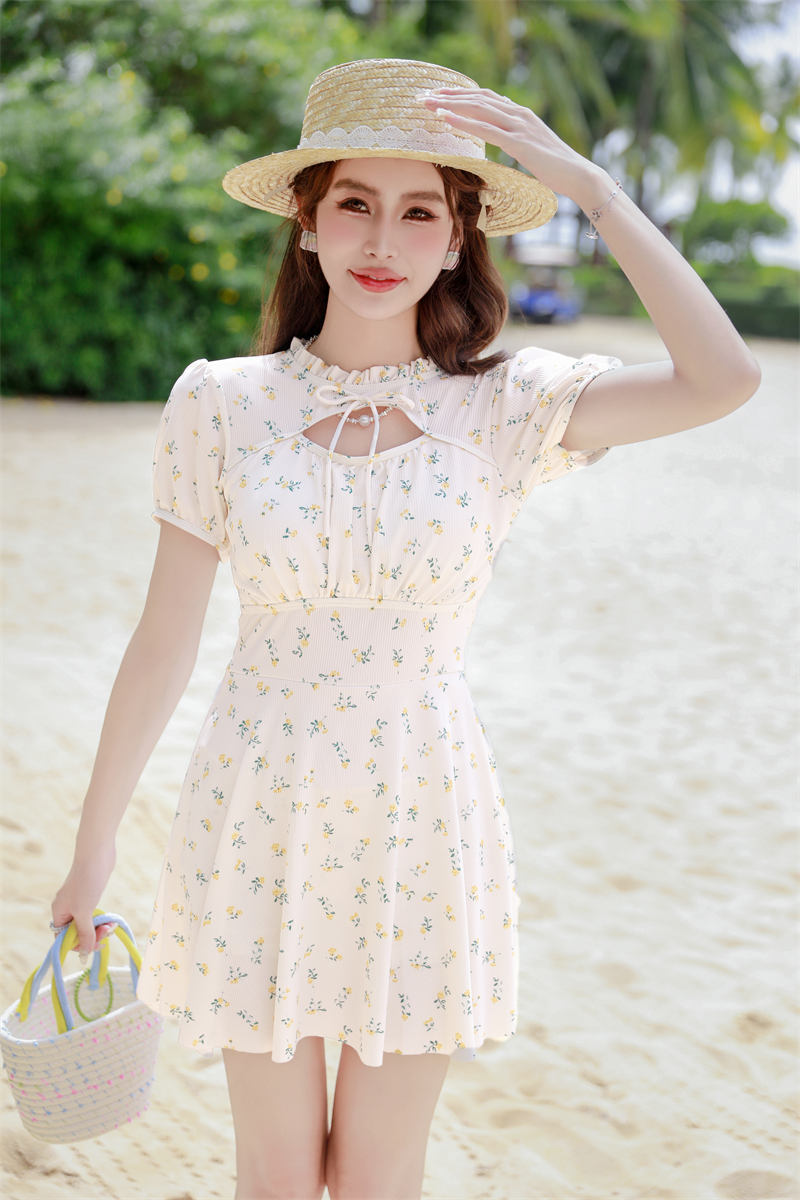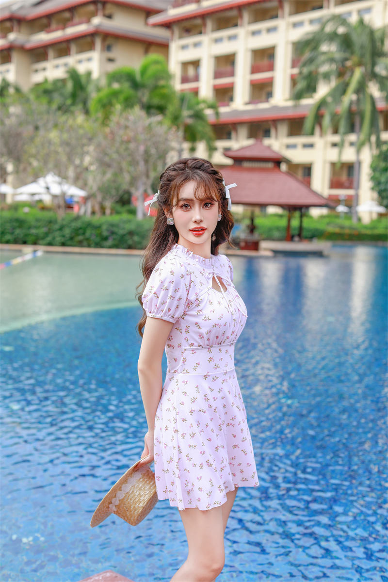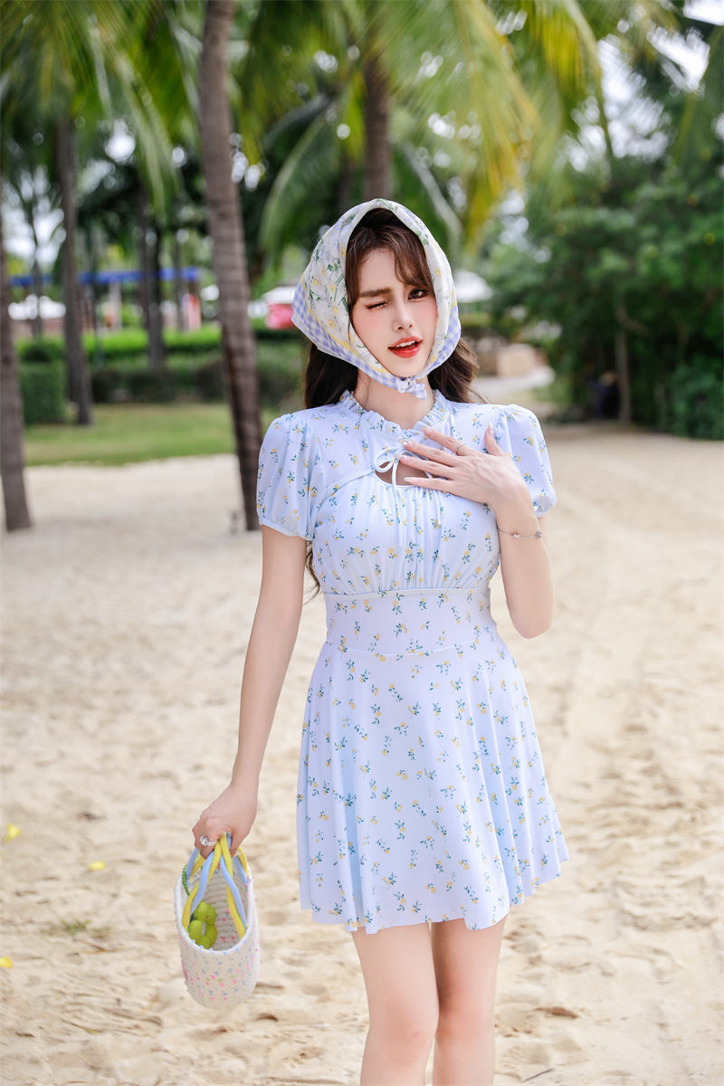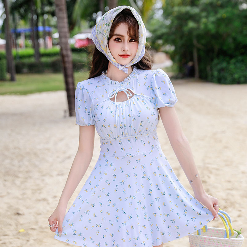 腾创泳衣女士泡温泉2024新款碎花连体显瘦遮肚游泳衣保守泳装