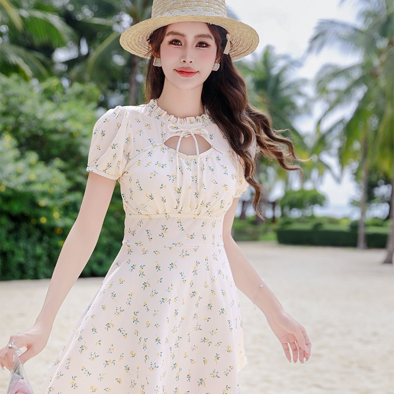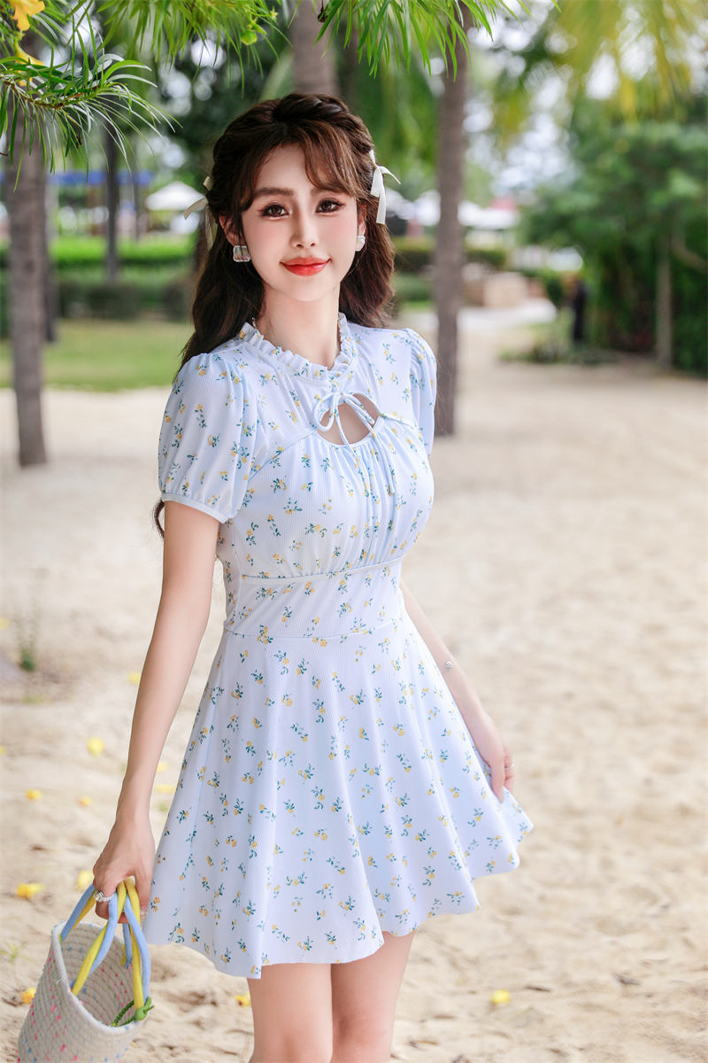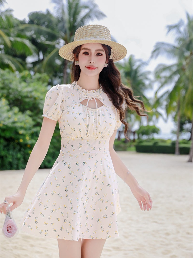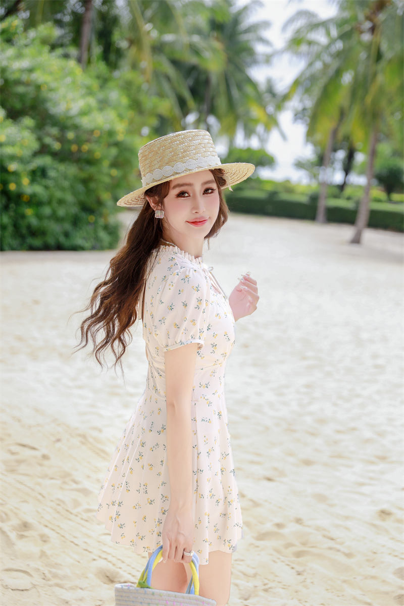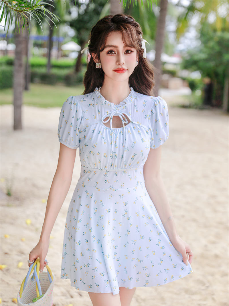 腾创泳衣女士泡温泉2024新款碎花连体显瘦遮肚游泳衣保守泳装