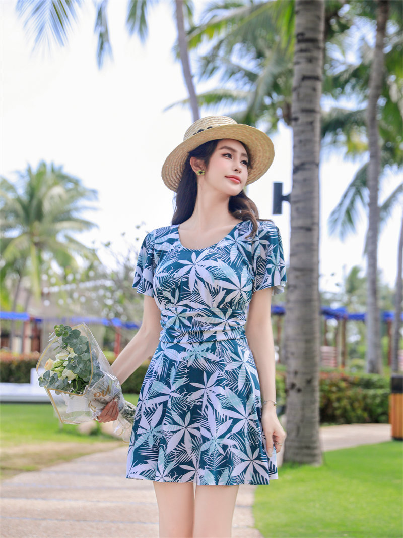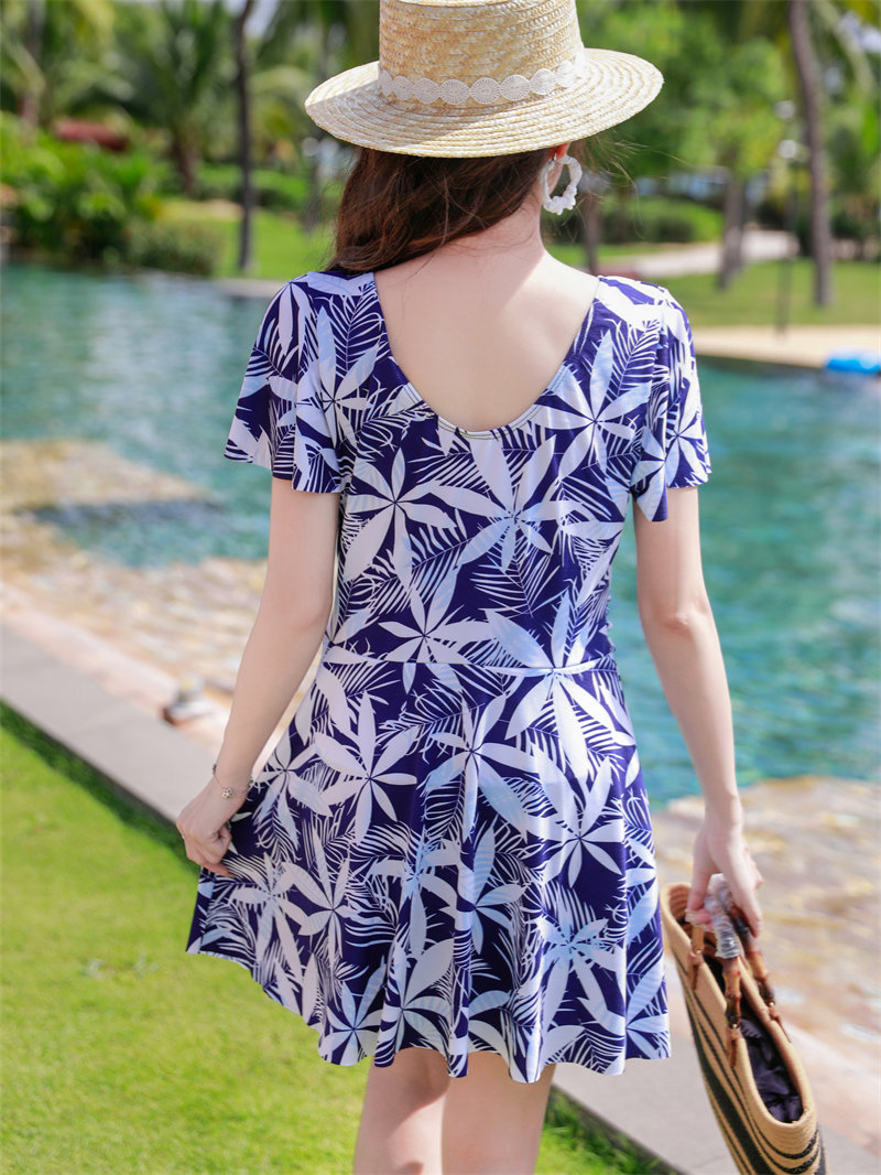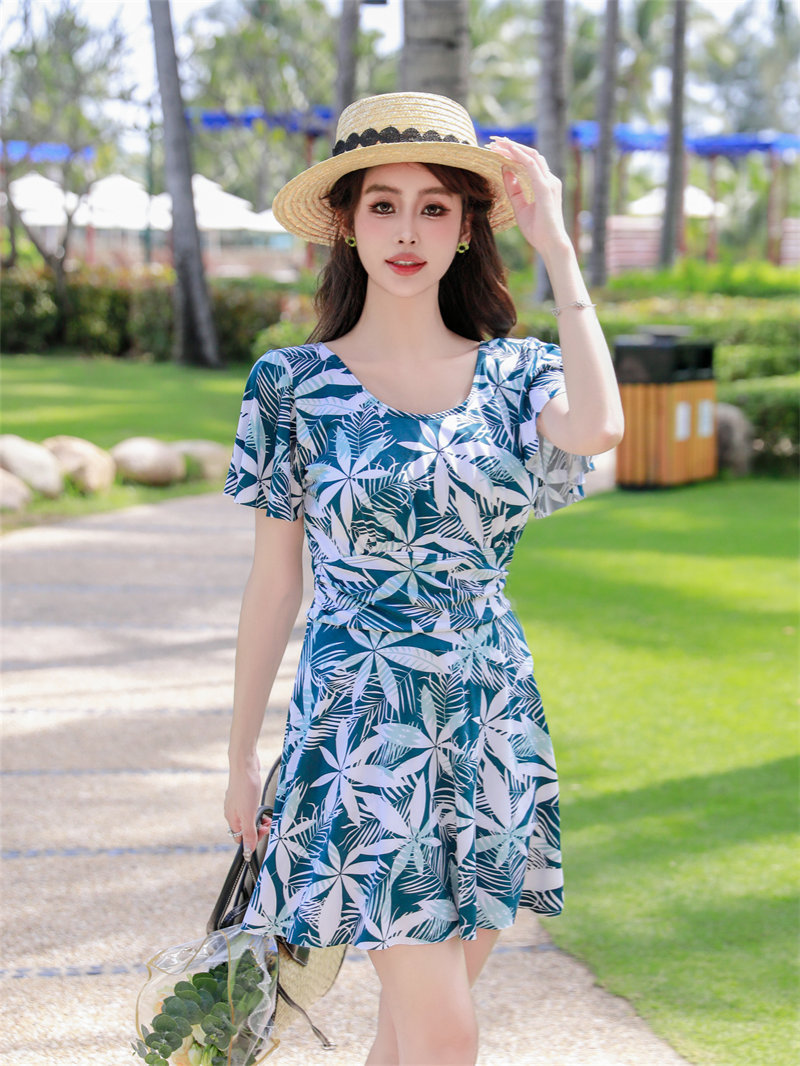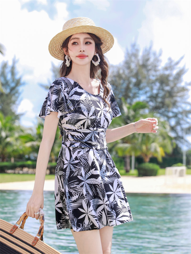 泳衣女士泡温泉2024新款大码连体显瘦遮肚游泳衣保守妈妈装泳装