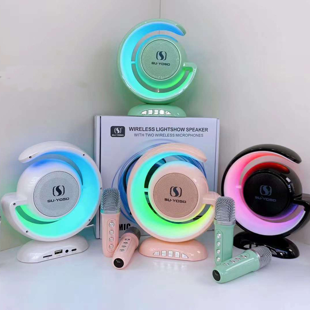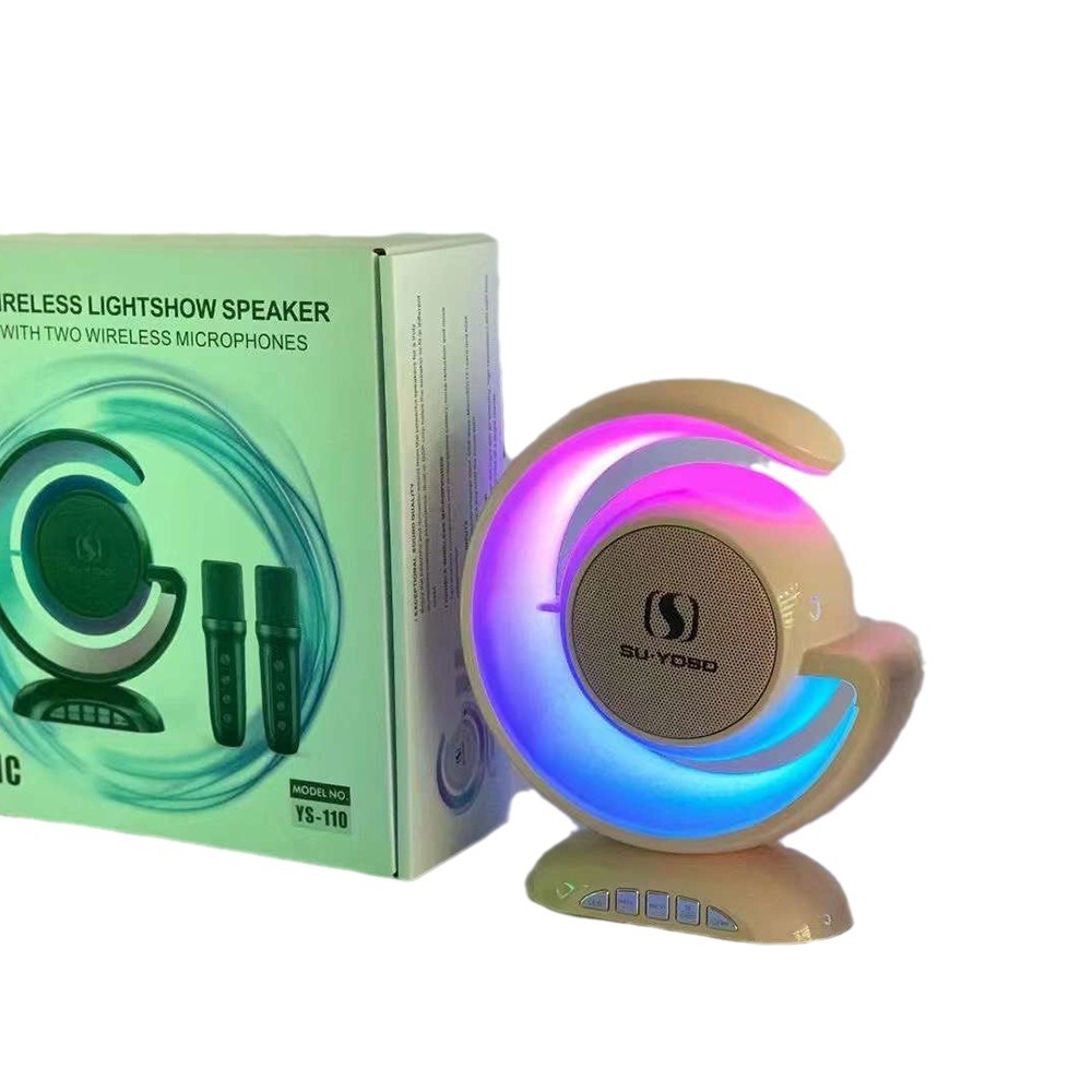 YS-110 家庭KTV 炫彩灯 无线蓝牙双麦克风 K歌音响台灯一体机