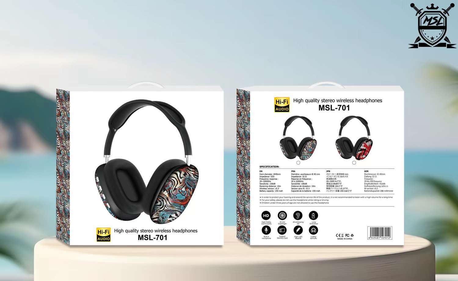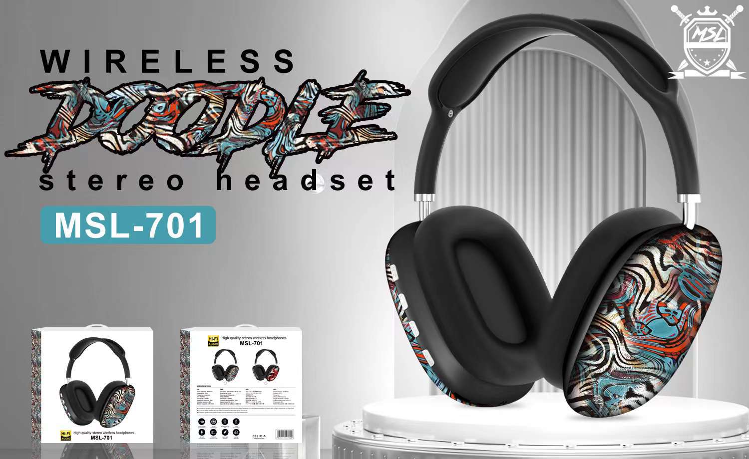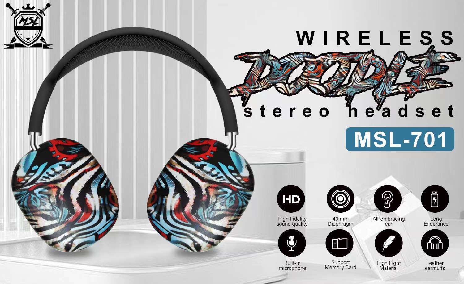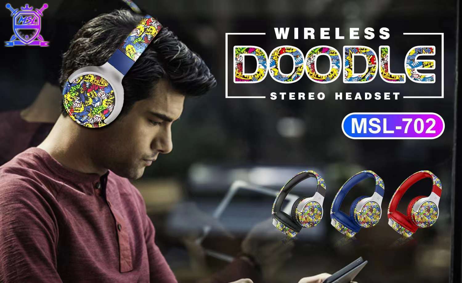 MSL-701 跨境新款国潮涂鸦头戴蓝牙耳机电竞游戏耳机运动无线耳机