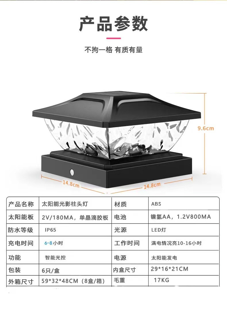 外贸专供太阳能柱头灯户外防水灯门柱灯柱子围墙柱头灯别墅立柱灯