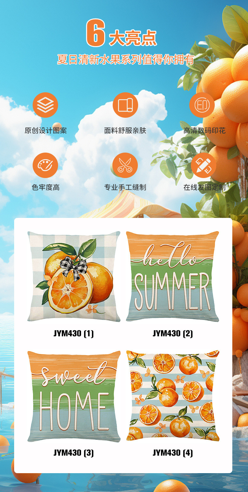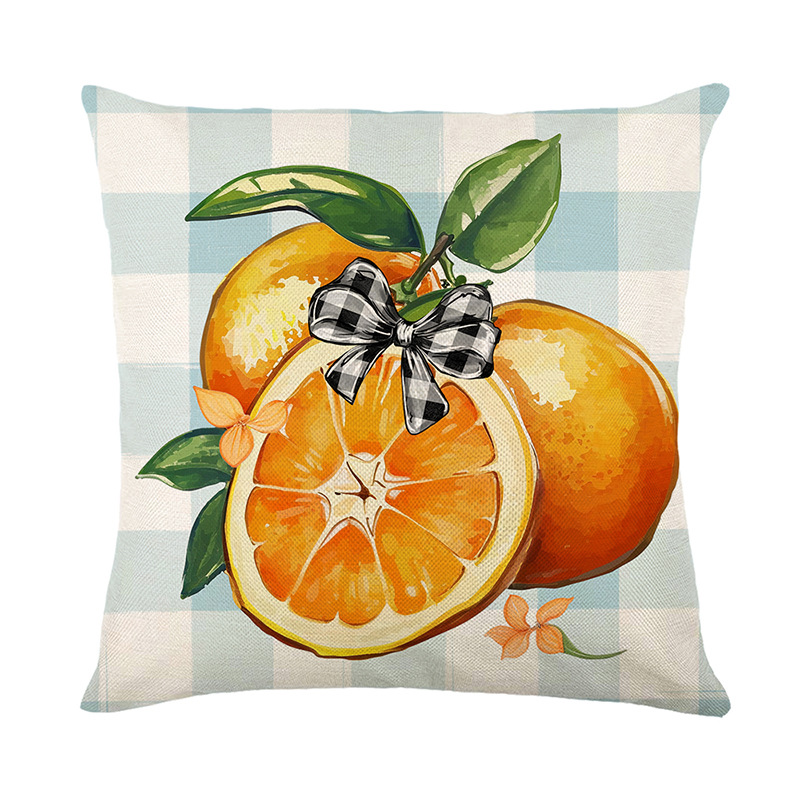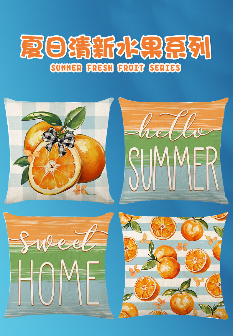 TEMU夏日清新水果抱枕套亚麻印花字母靠枕套客厅卧室装饰靠垫批发
