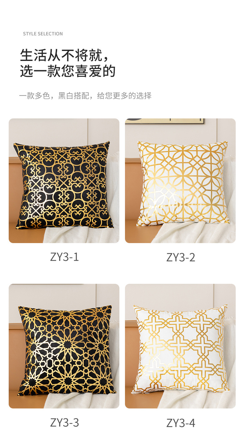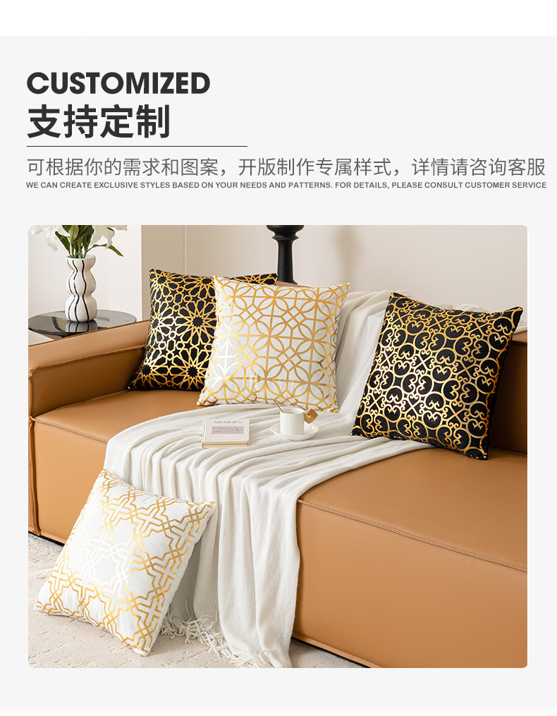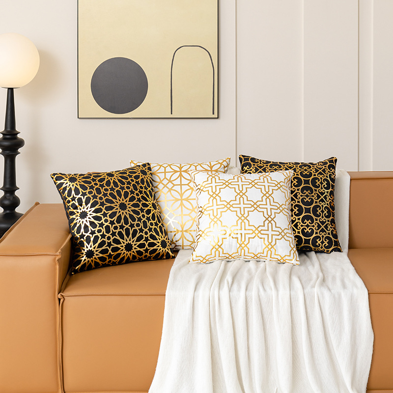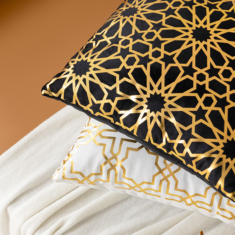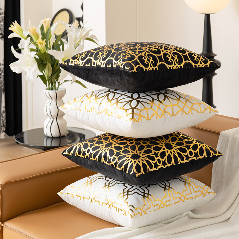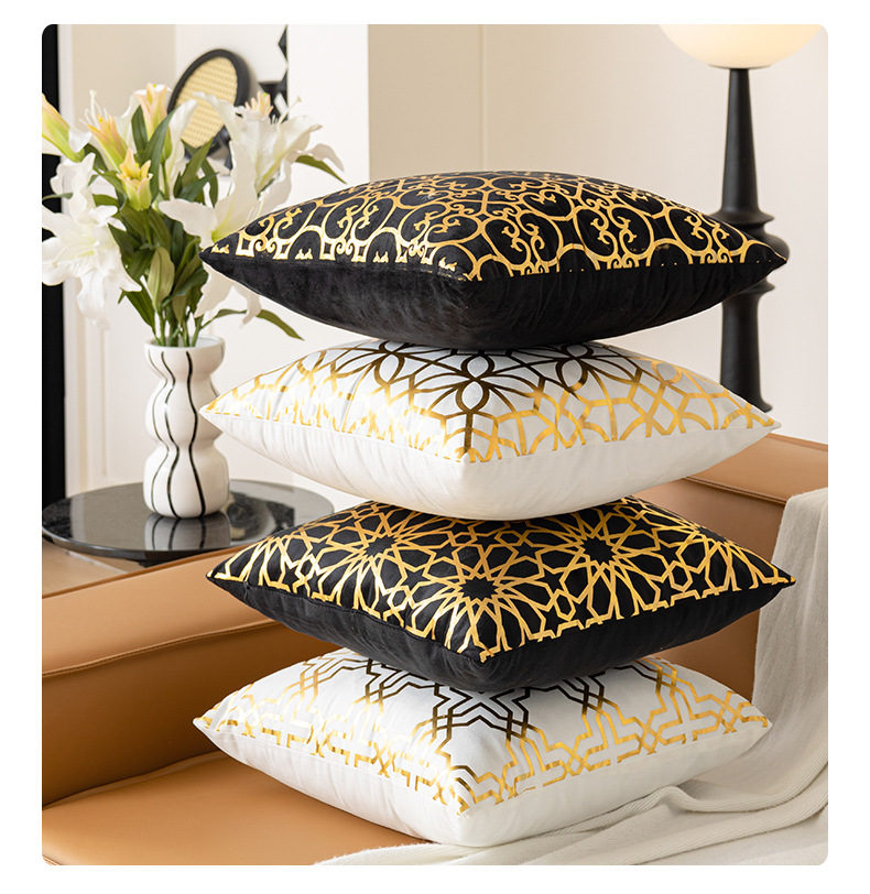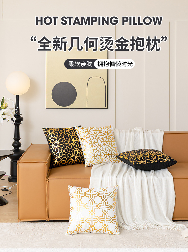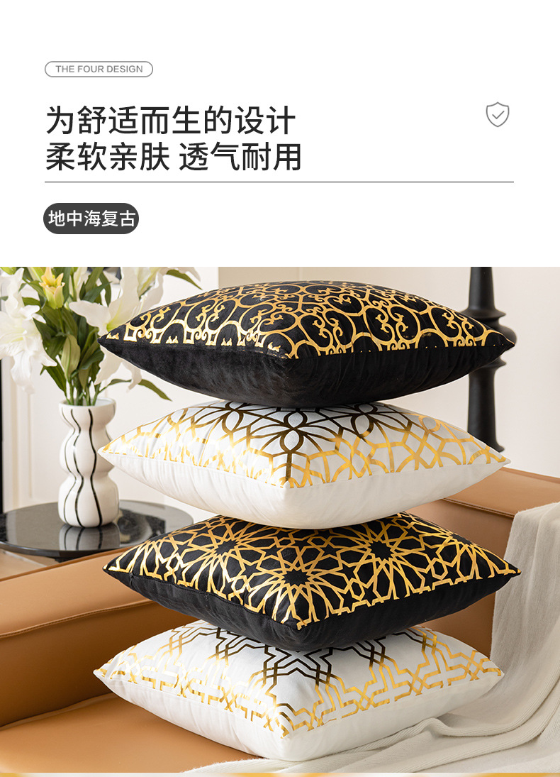 跨境几何烫金抱枕套复古黑白双色家居沙发靠垫套短毛绒装饰靠枕套