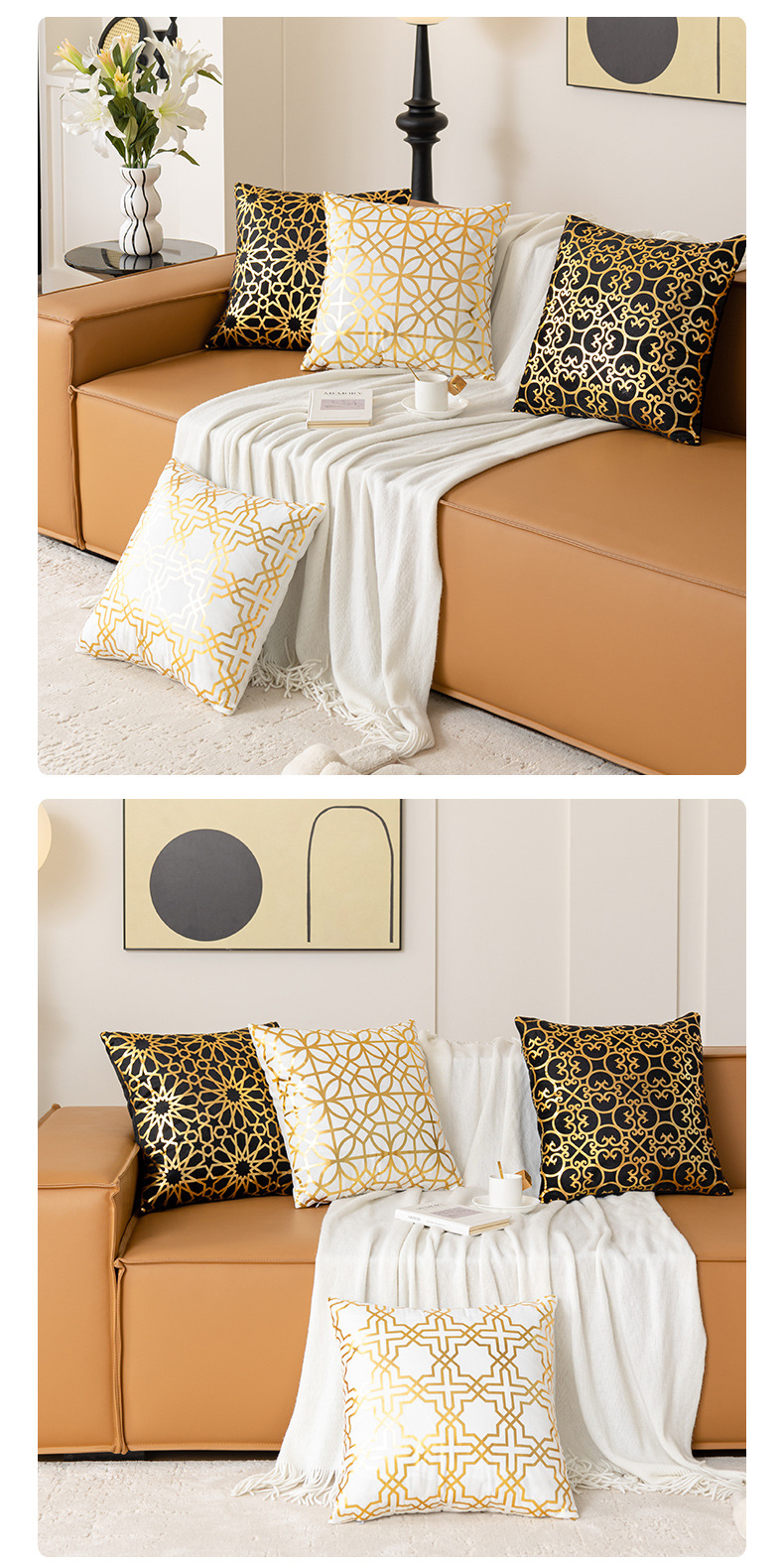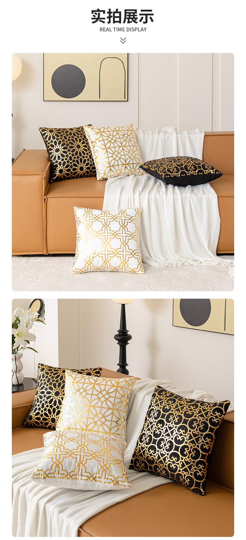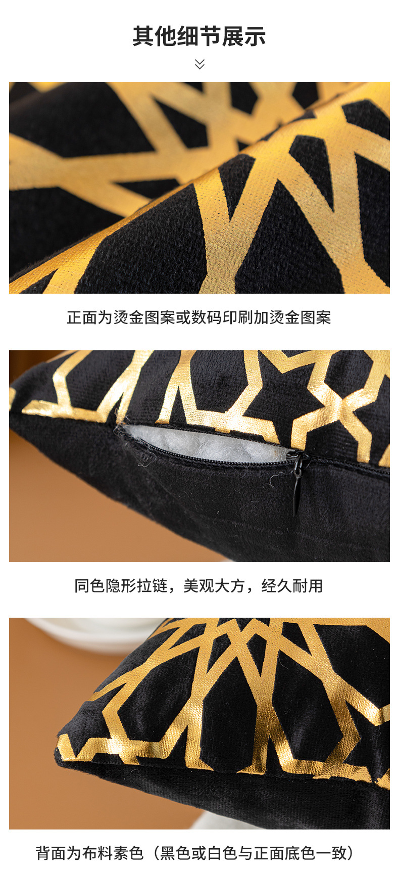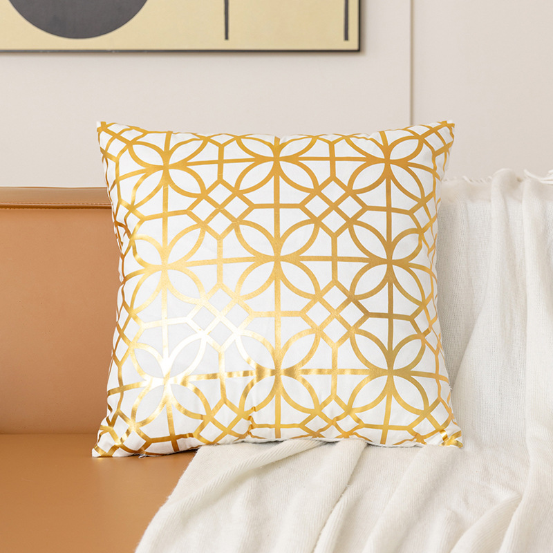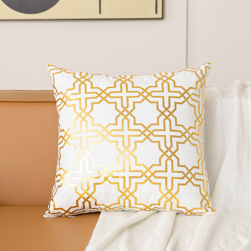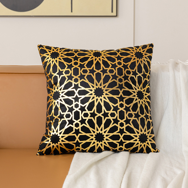 跨境几何烫金抱枕套复古黑白双色家居沙发靠垫套短毛绒装饰靠枕套