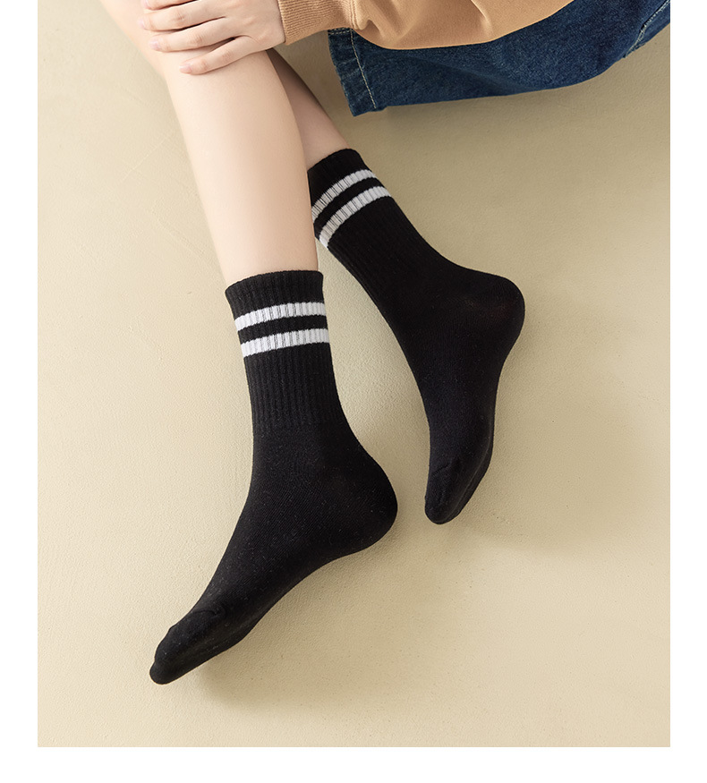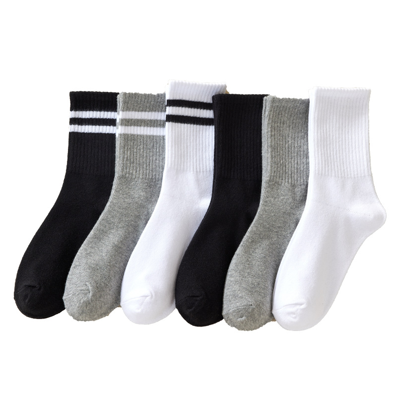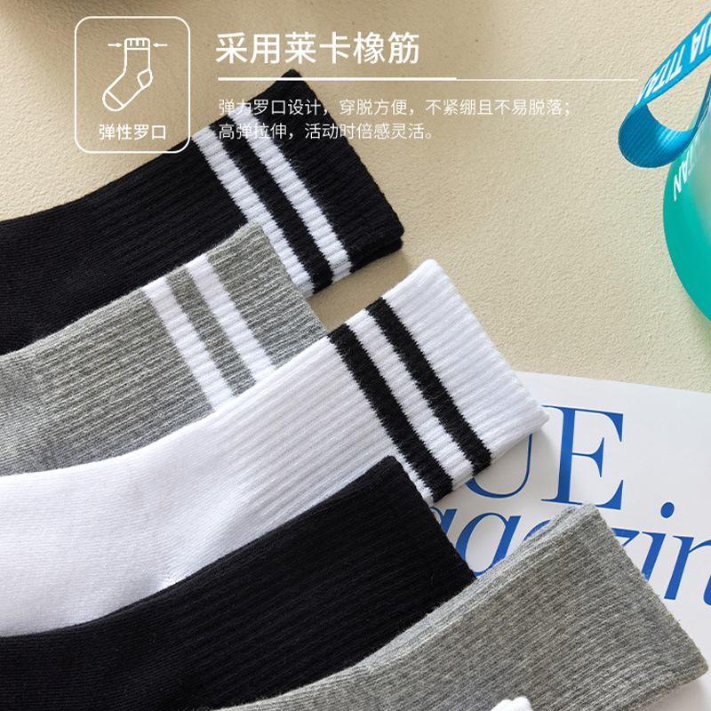 袜子男士中筒袜防滑男女通用速干长筒运动休闲袜黑白双杠