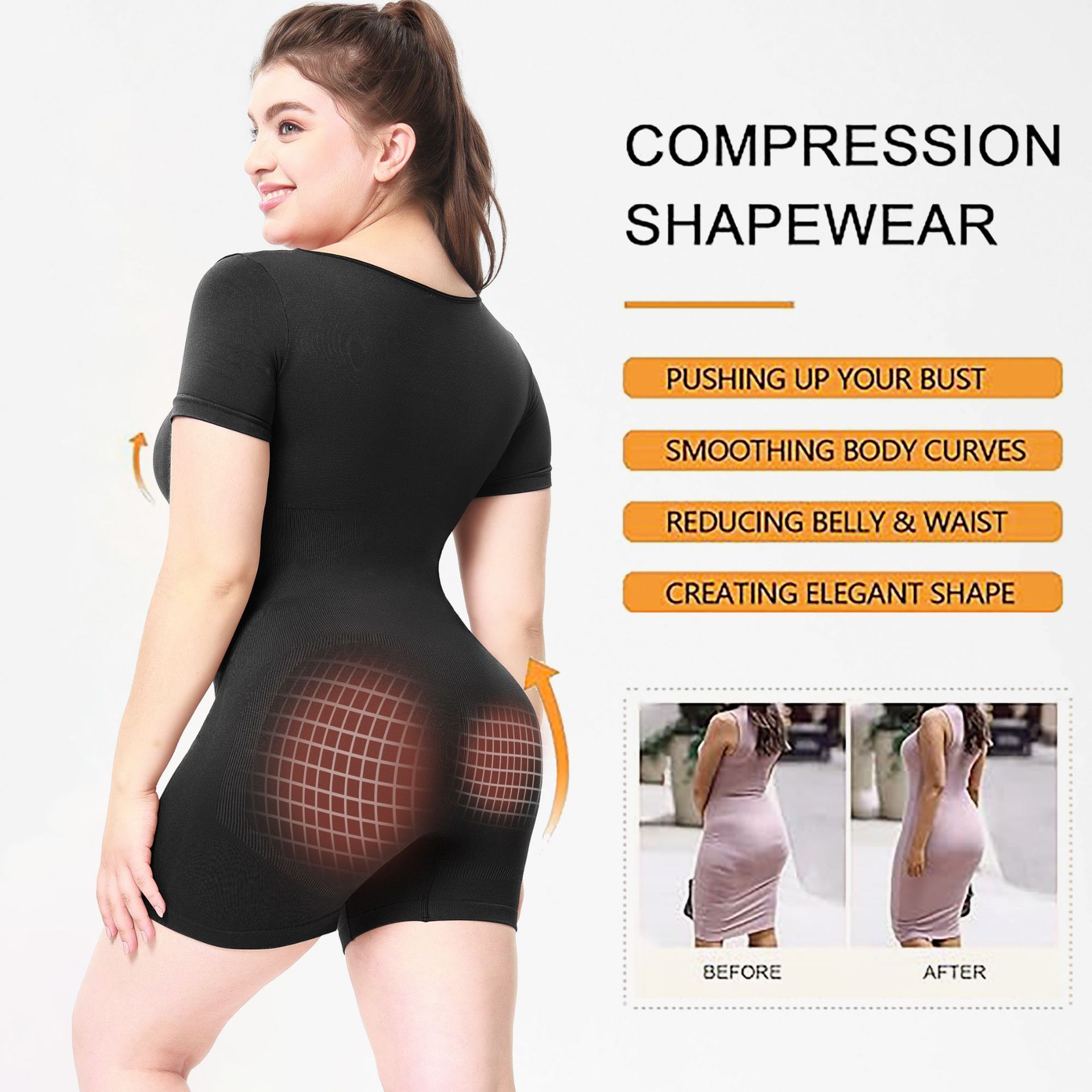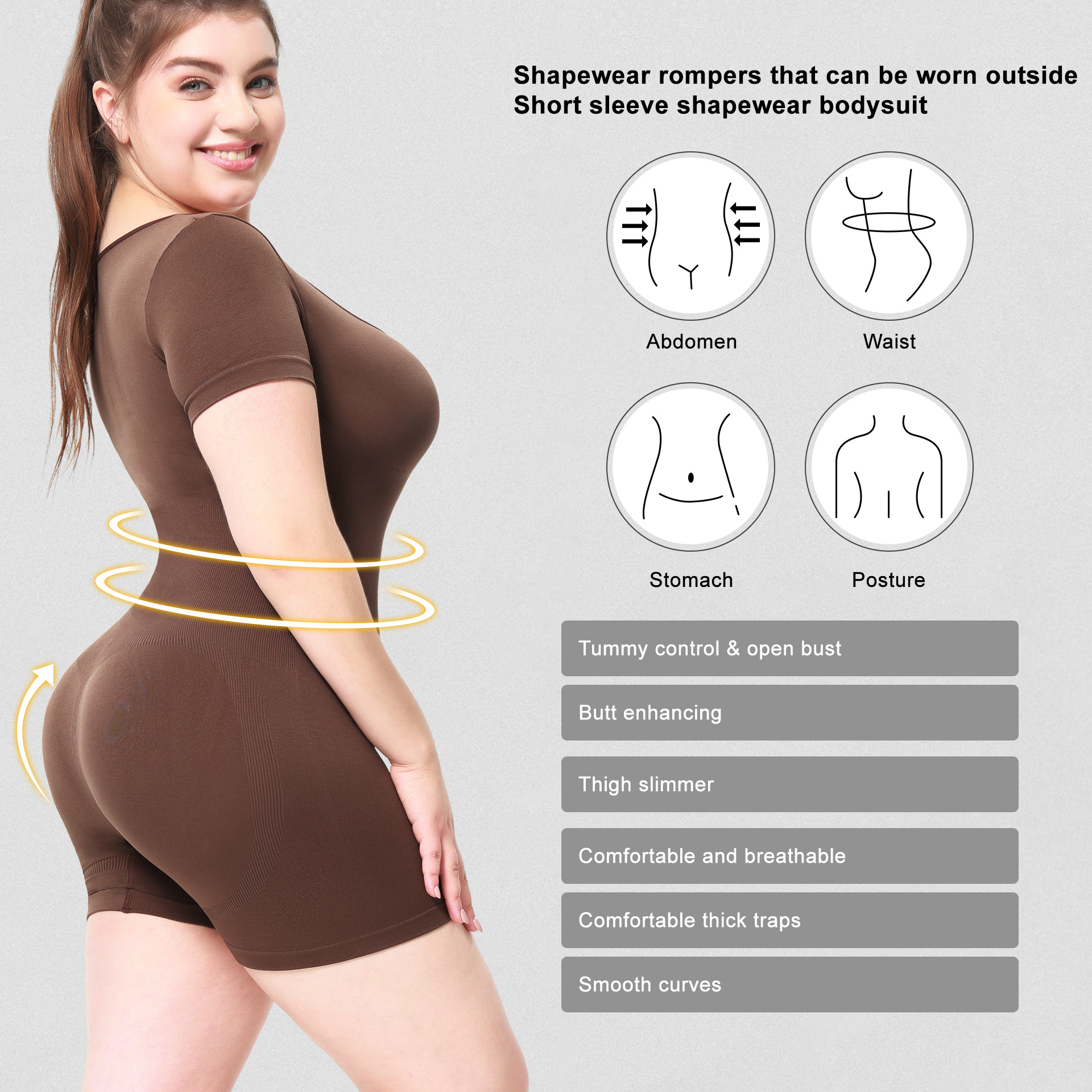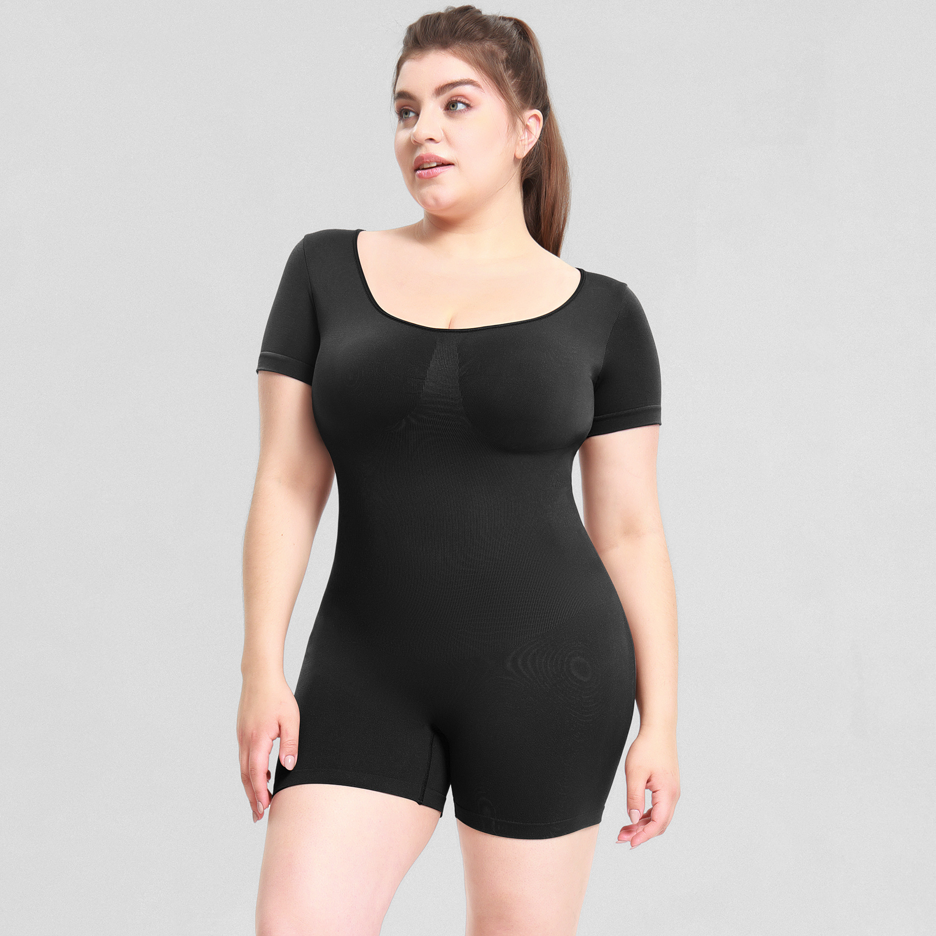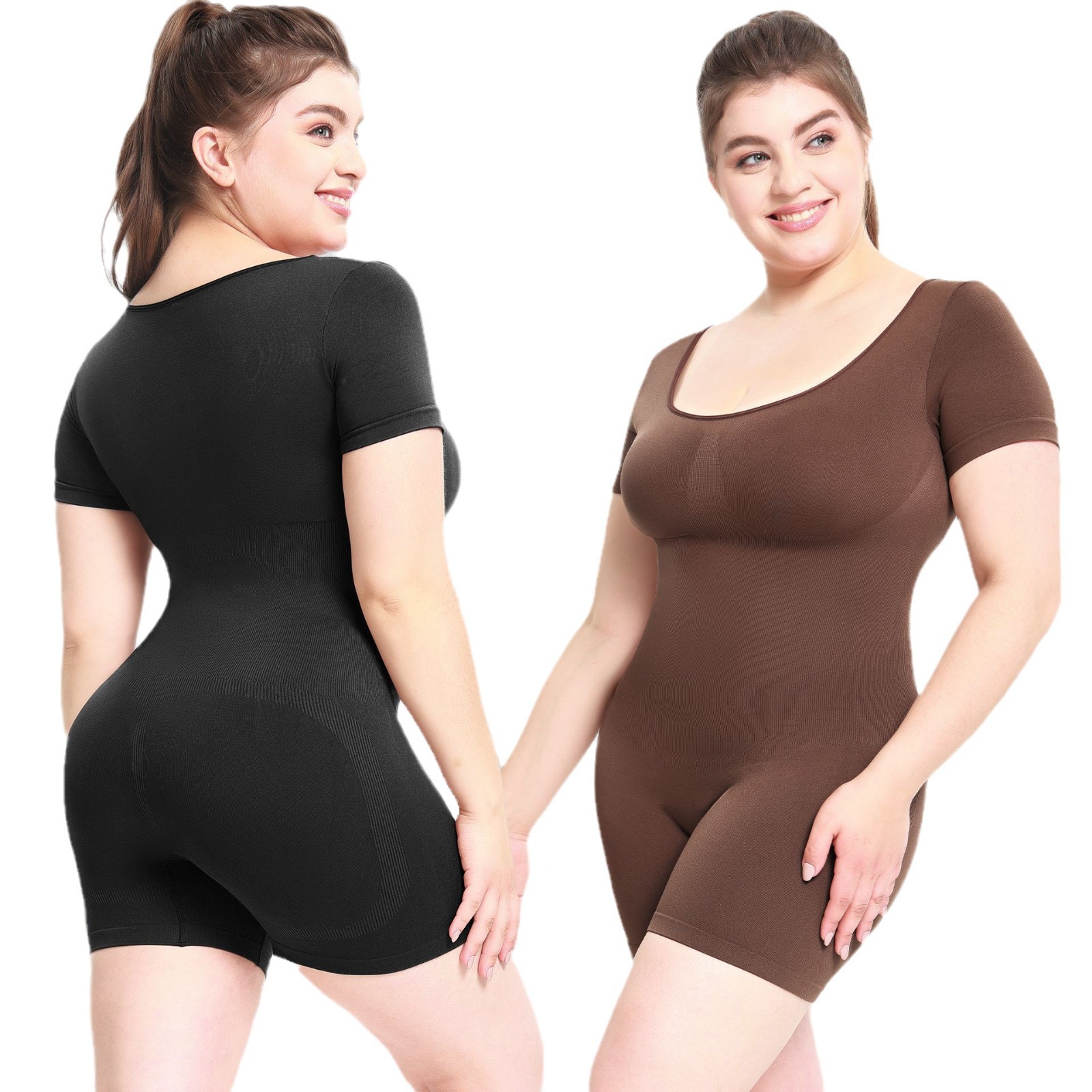 跨境大码塑身衣女美体塑型Bodysuit无缝短袖束身运动瑜伽连体衣
