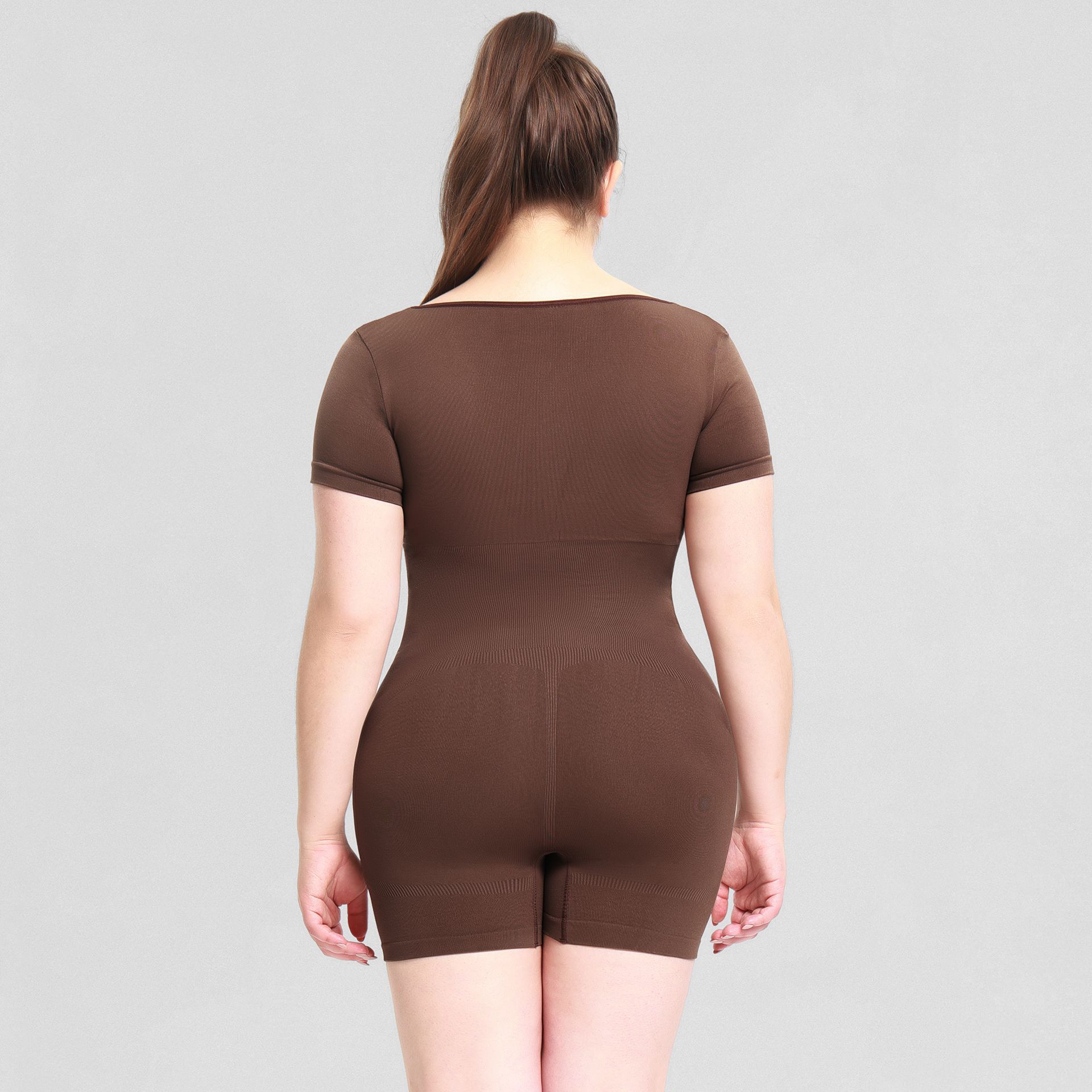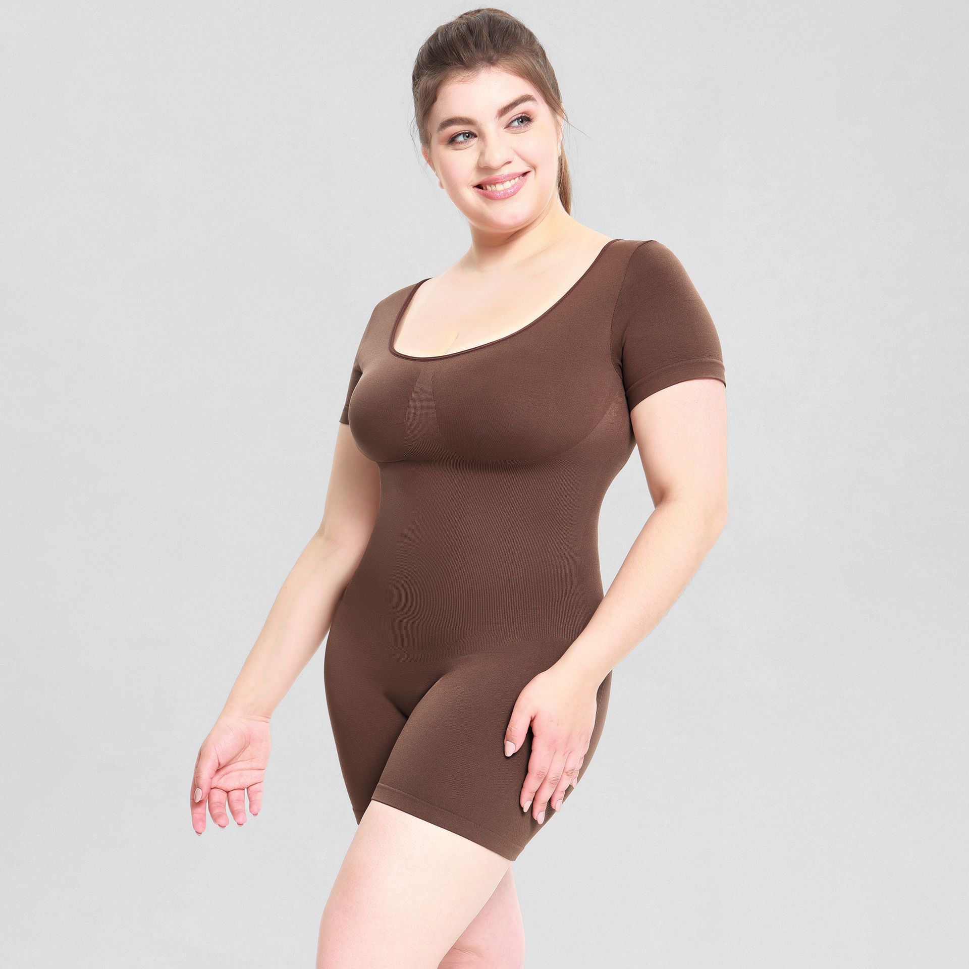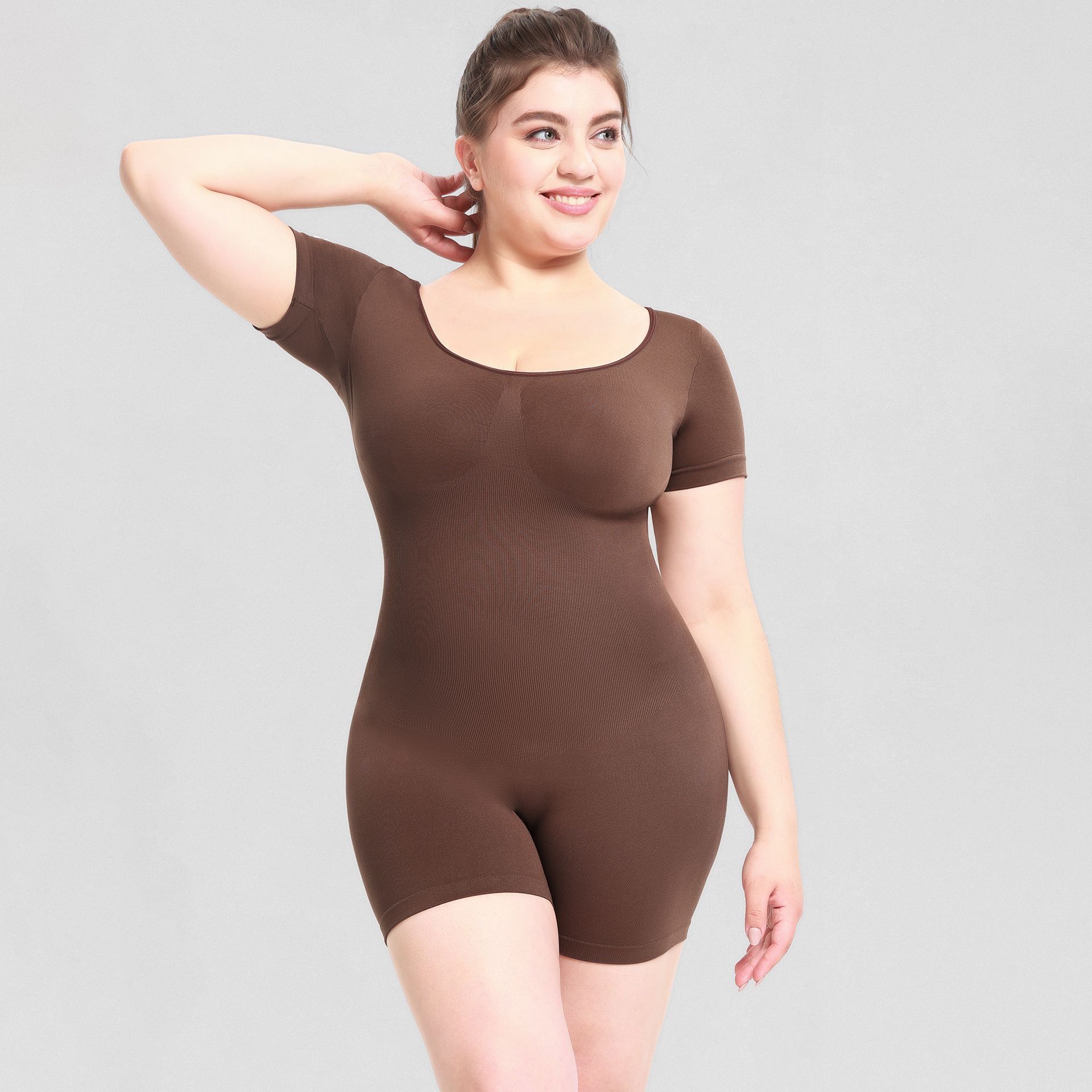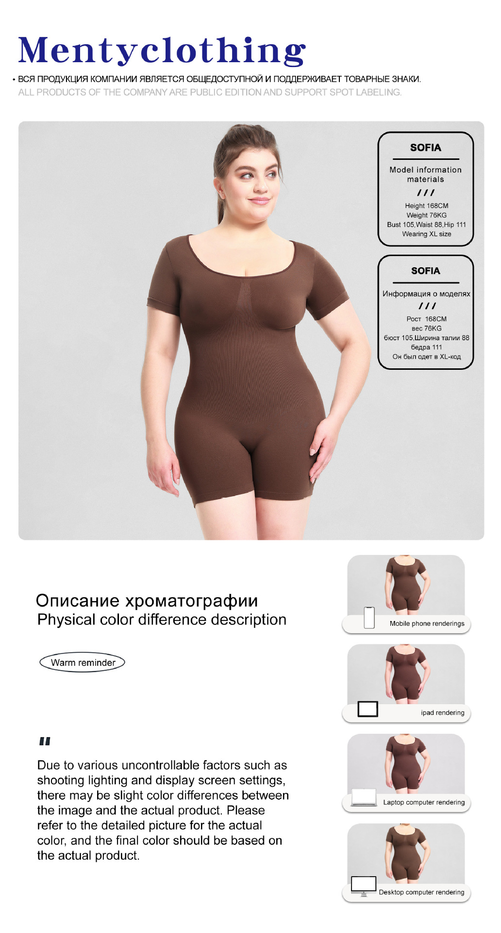 跨境大码塑身衣女美体塑型Bodysuit无缝短袖束身运动瑜伽连体衣