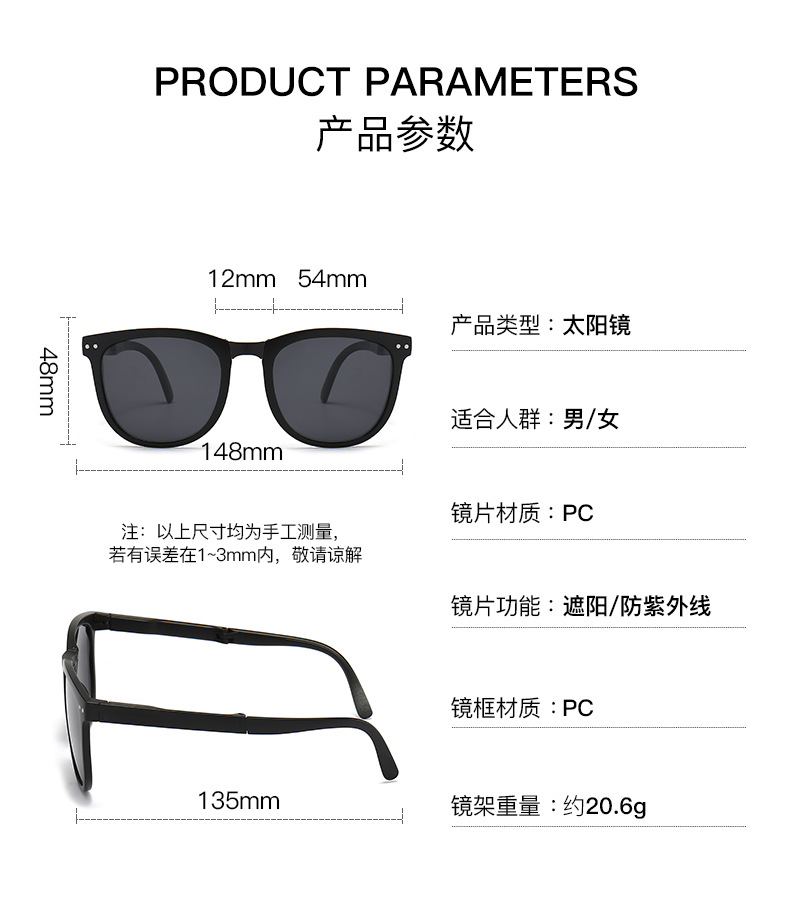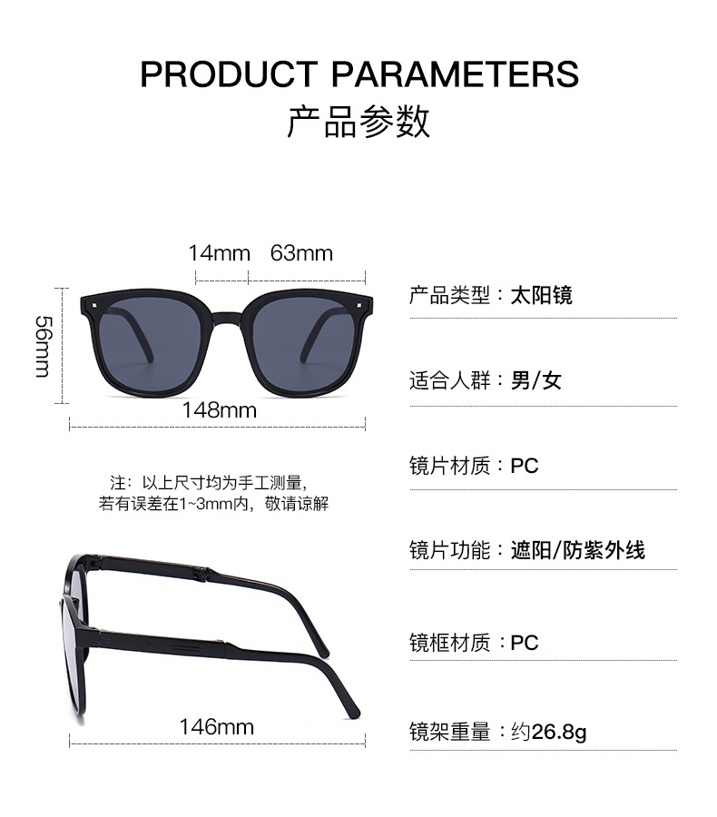 24年新款可折叠墨镜女防紫外线百搭夏季防晒空气气垫偏光太阳眼镜