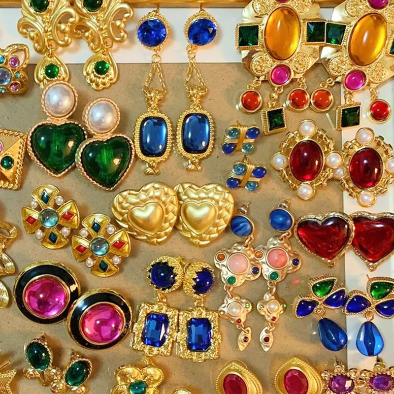 中古vintage耳环轻奢小众高级感耳钉时尚个性复古耳饰批发饰品女