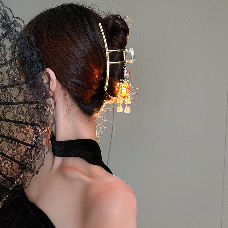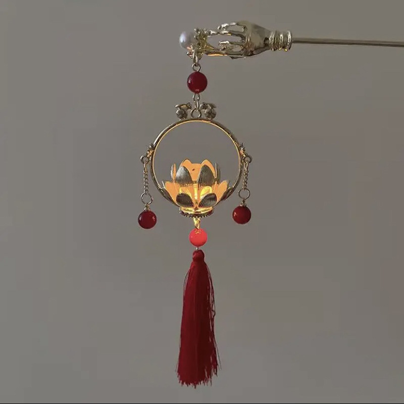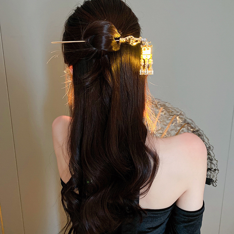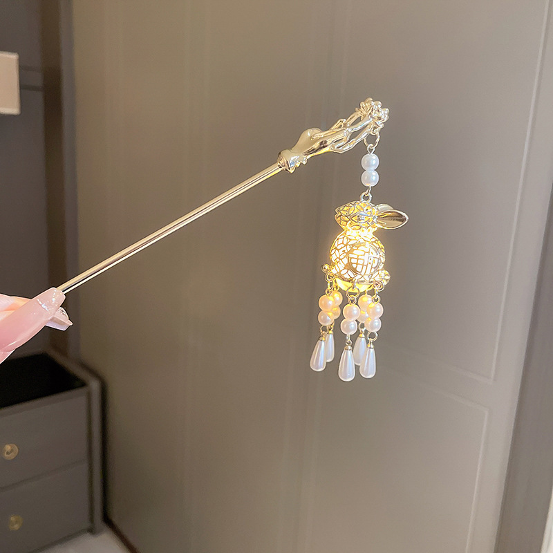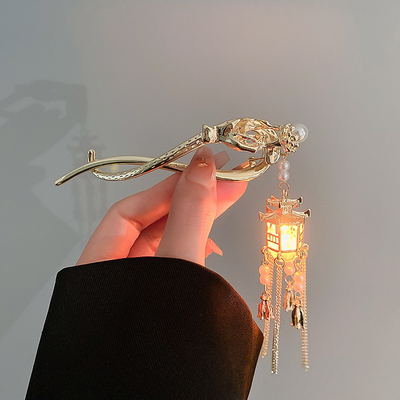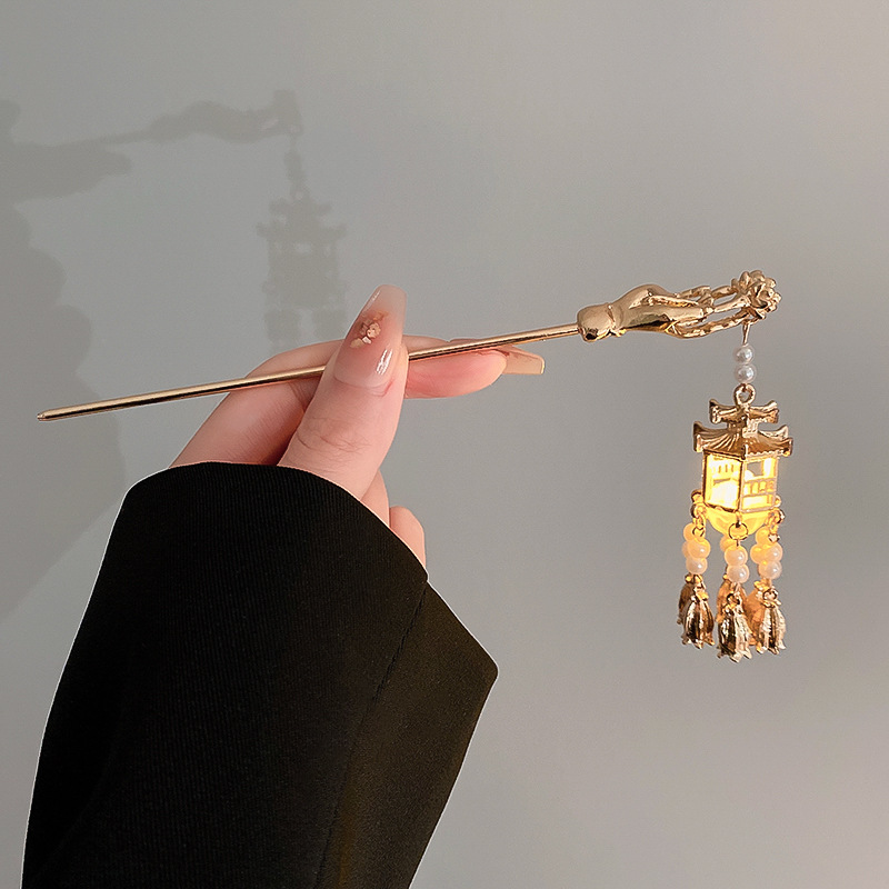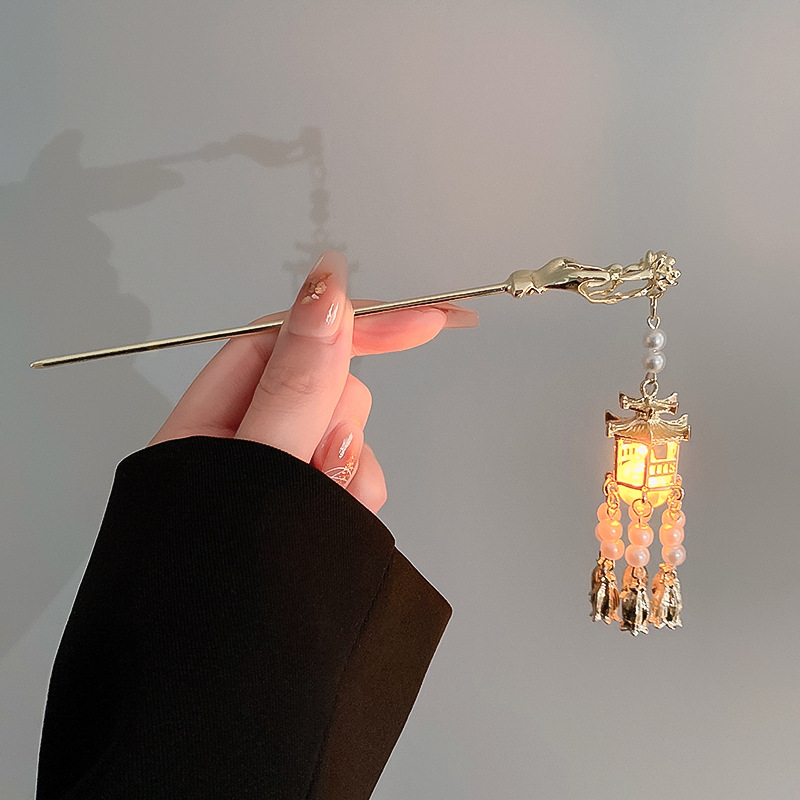古风可发光灯笼宫灯珍珠流苏发簪时尚小众盘发发钗高级感发饰批发