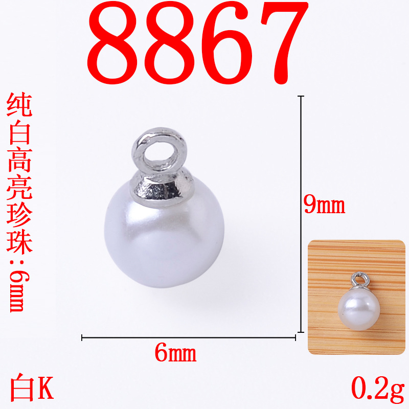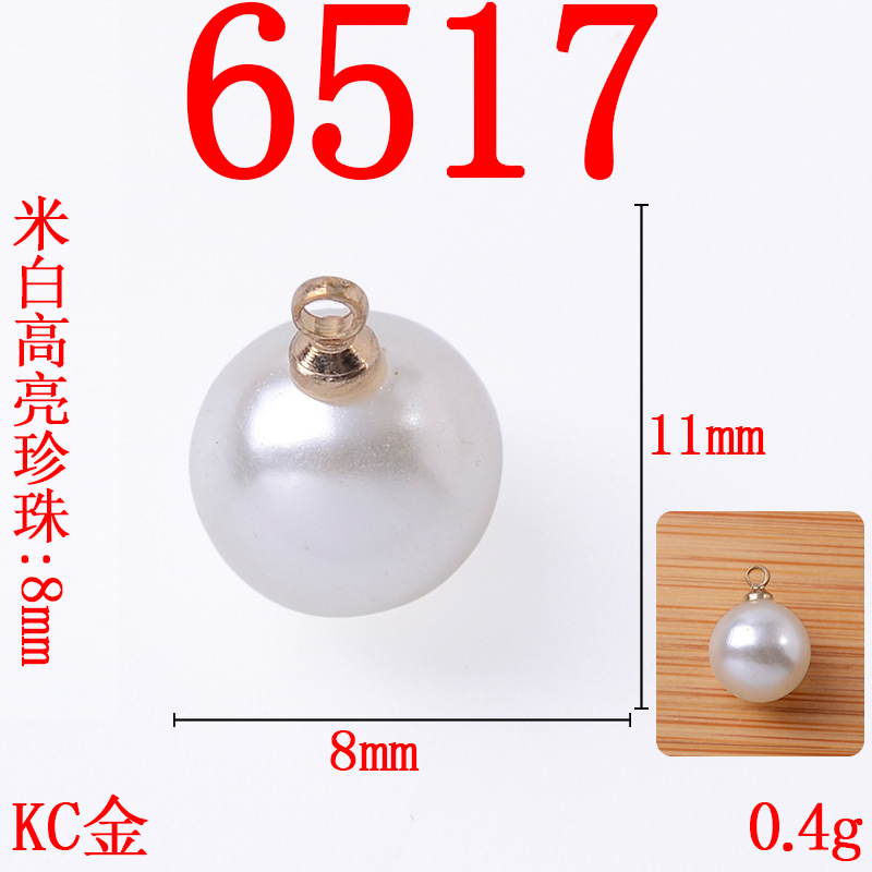跨境时尚米白纯白高亮珍珠吊坠 气质耳饰项链珍珠挂件合金diy配饰