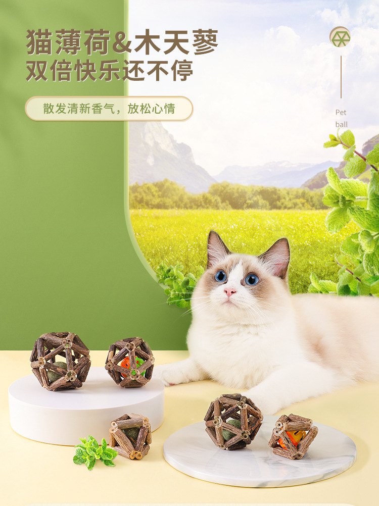 宠物猫玩具猫薄荷球木天蓼玲珑球猫咪自嗨互动耐咬洁齿玩具批发