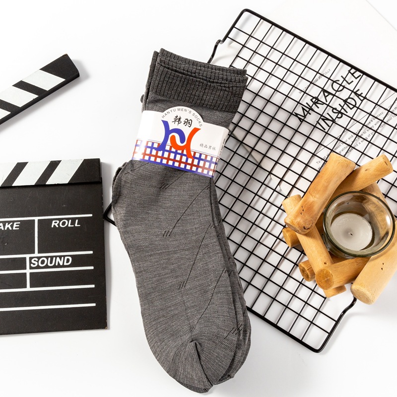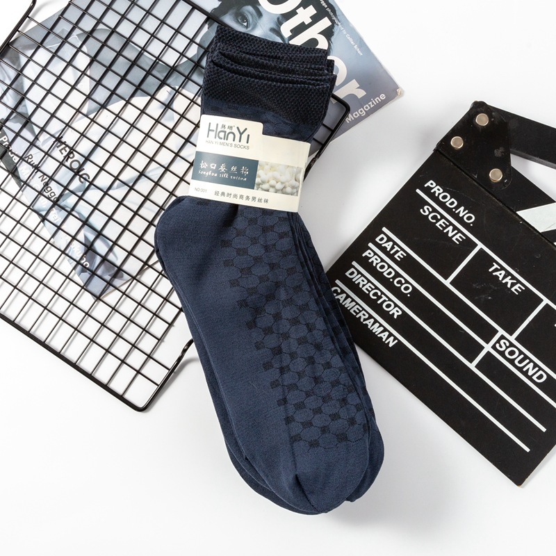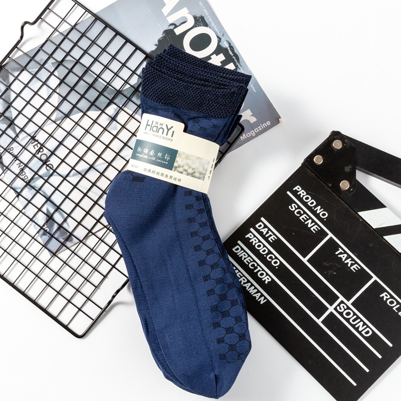 春夏新款中筒男丝袜松口蚕丝棉防勾丝袜中老年有后跟男丝袜批发