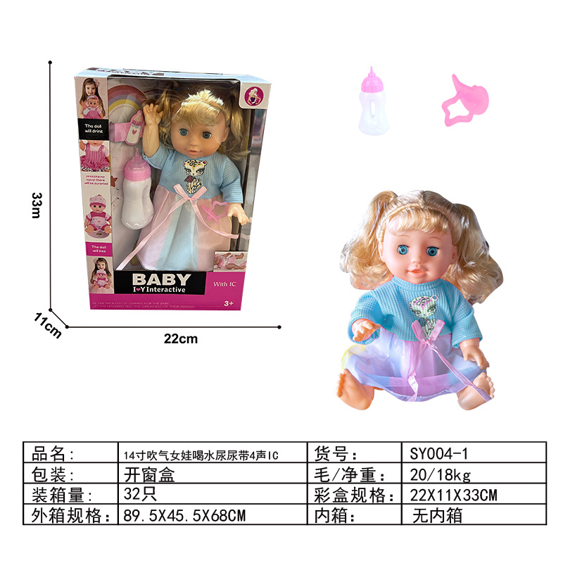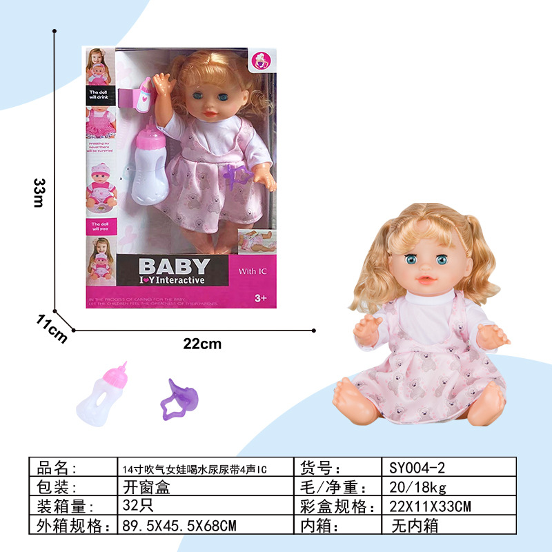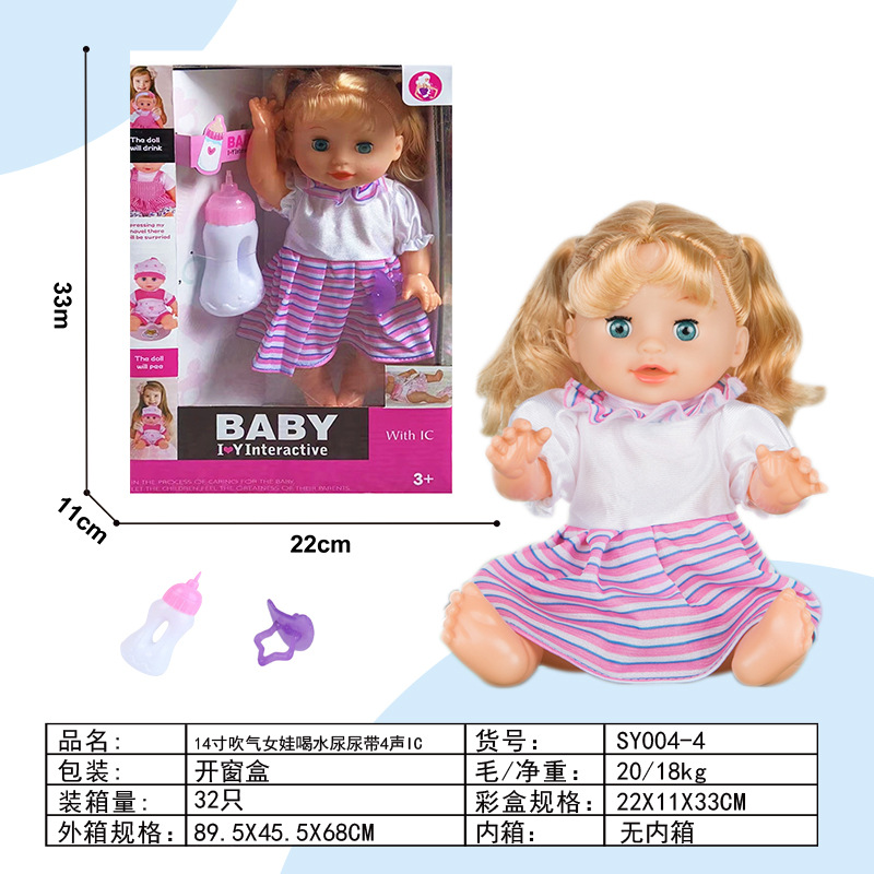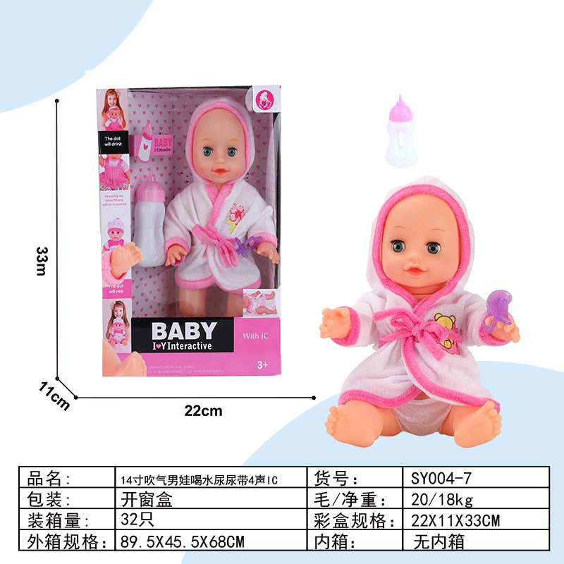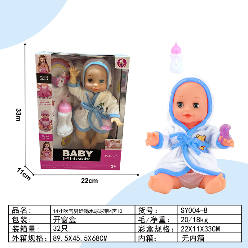 跨境仿真14寸吹瓶公仔批发可爱肥童 换装娃娃过家家场景扮演玩具