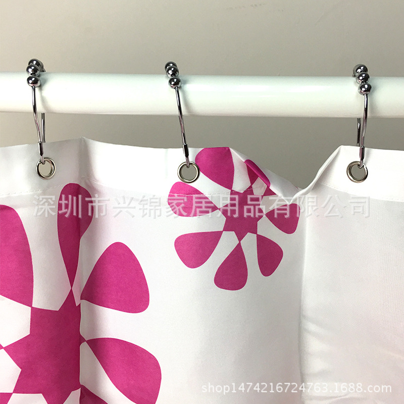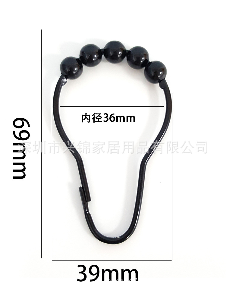 厂家直销跨境专供不锈钢浴帘挂钩粘钩五珠滚珠窗帘钩浴帘钩葫芦环