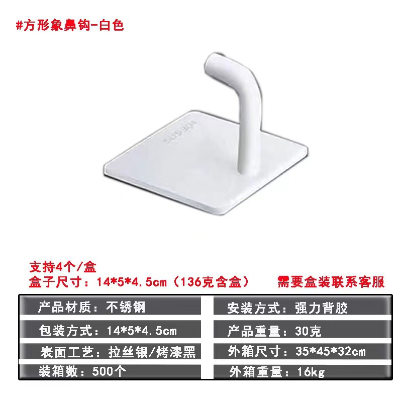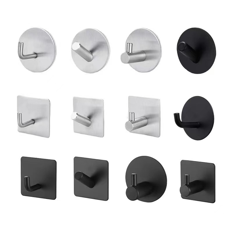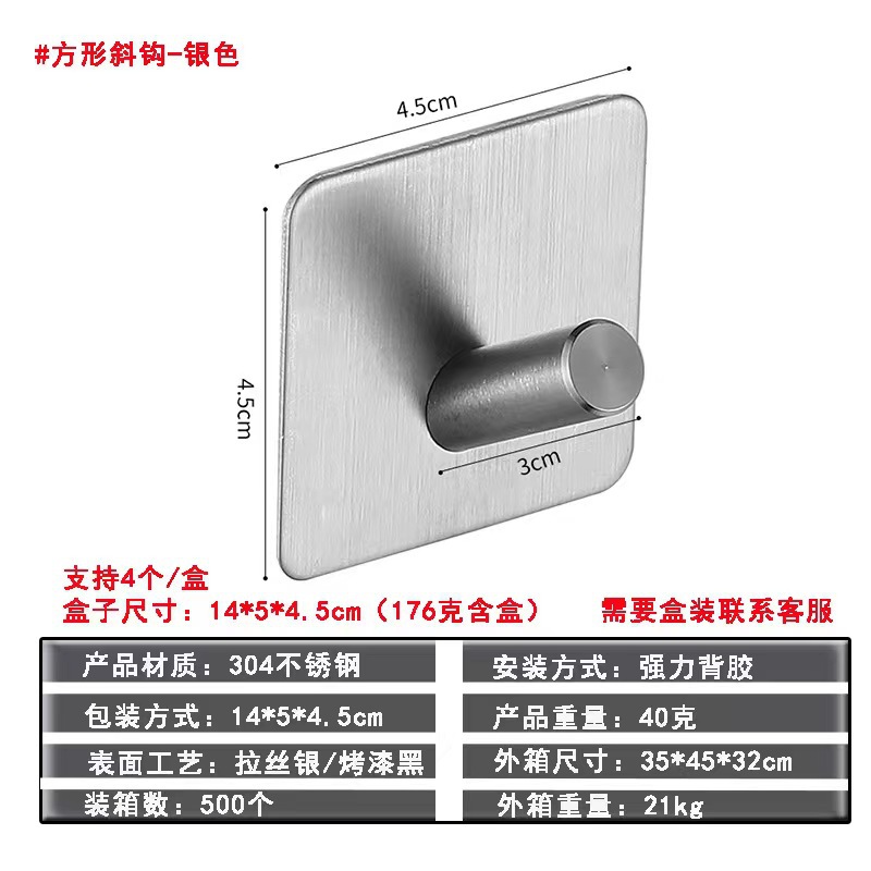 跨境304不锈钢挂钩粘钩免打孔无痕单挂勾浴室厨房门后金属衣帽钩