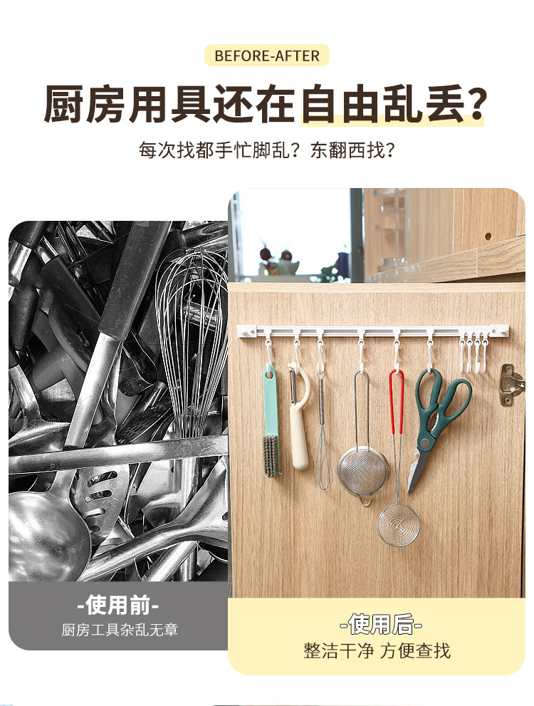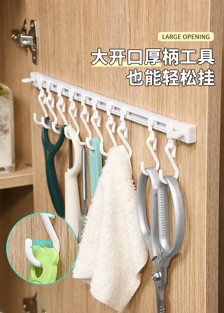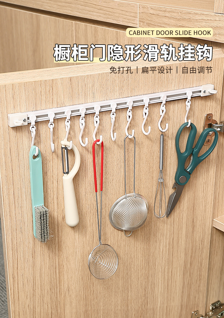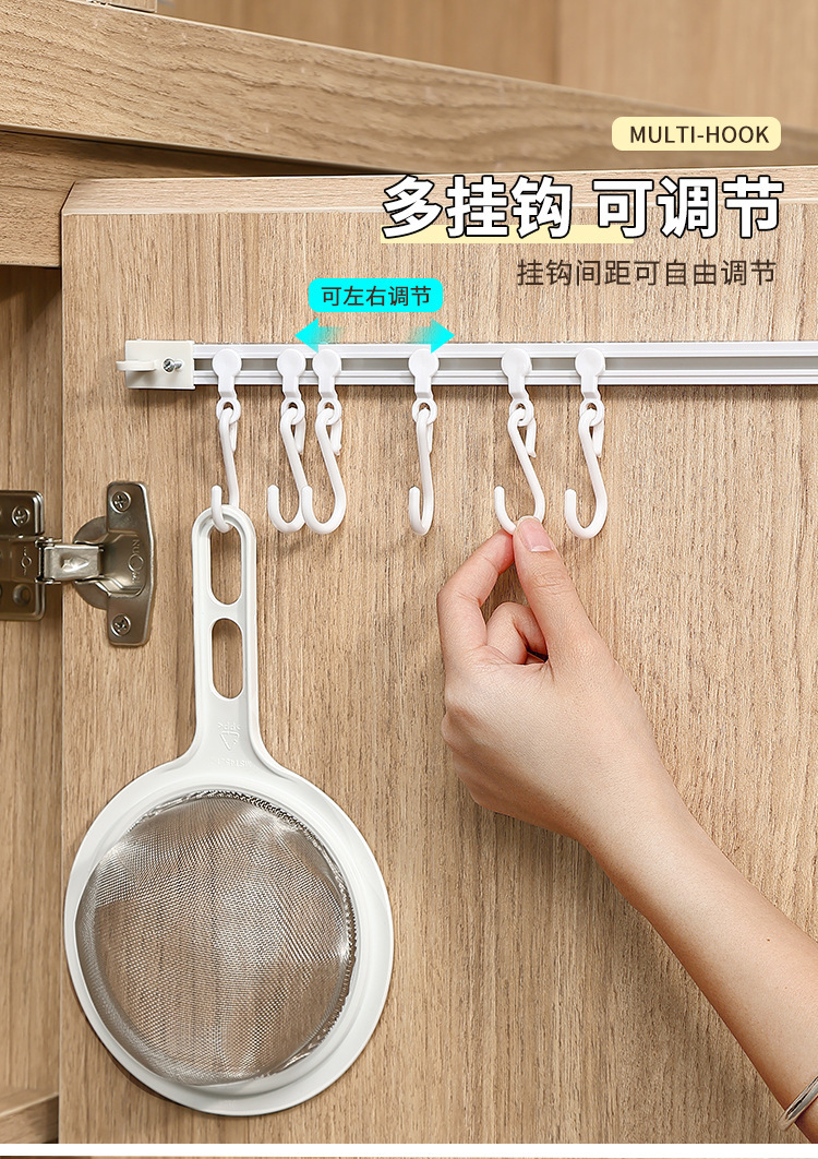 轨道壁挂勾橱柜挂钩厨房排钩可滑动S钩多功能钩子免打孔长排贴钩
