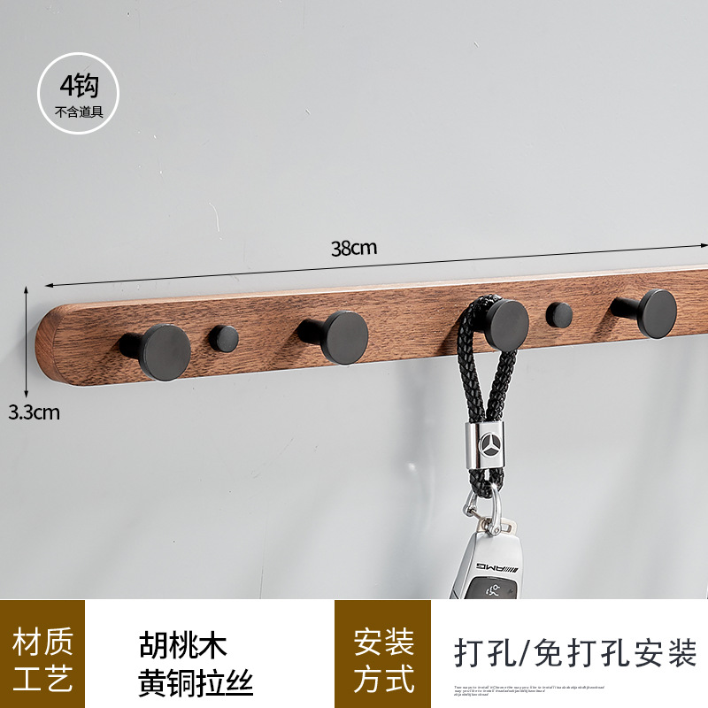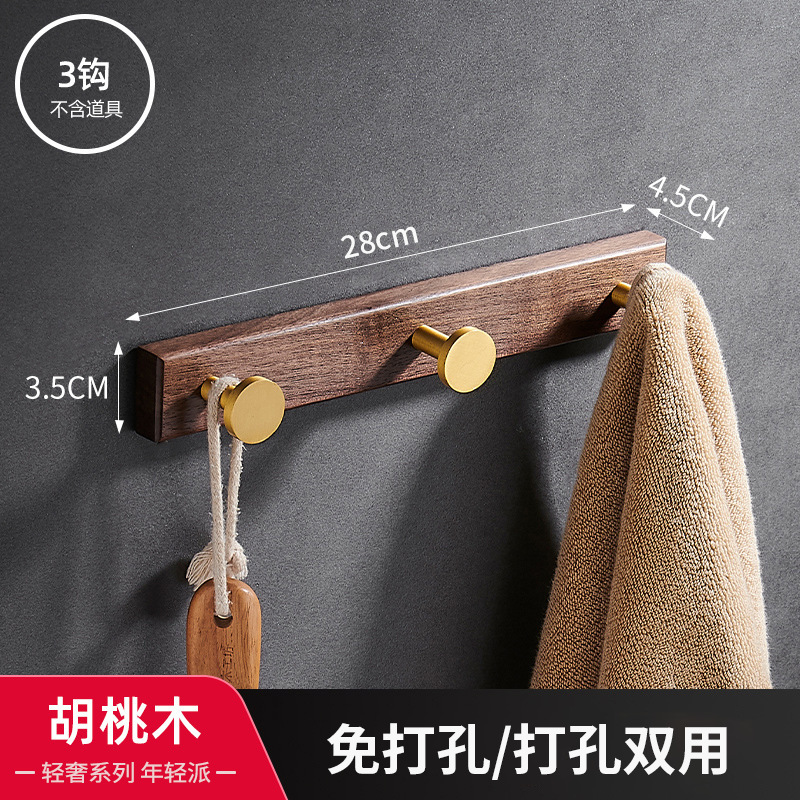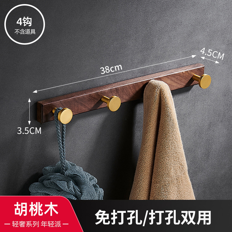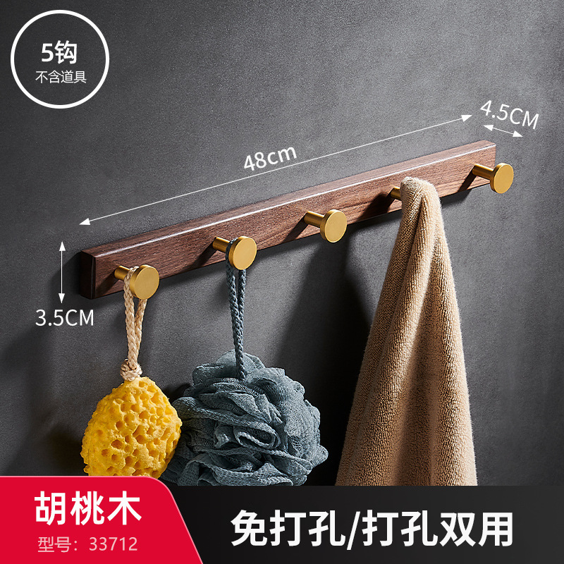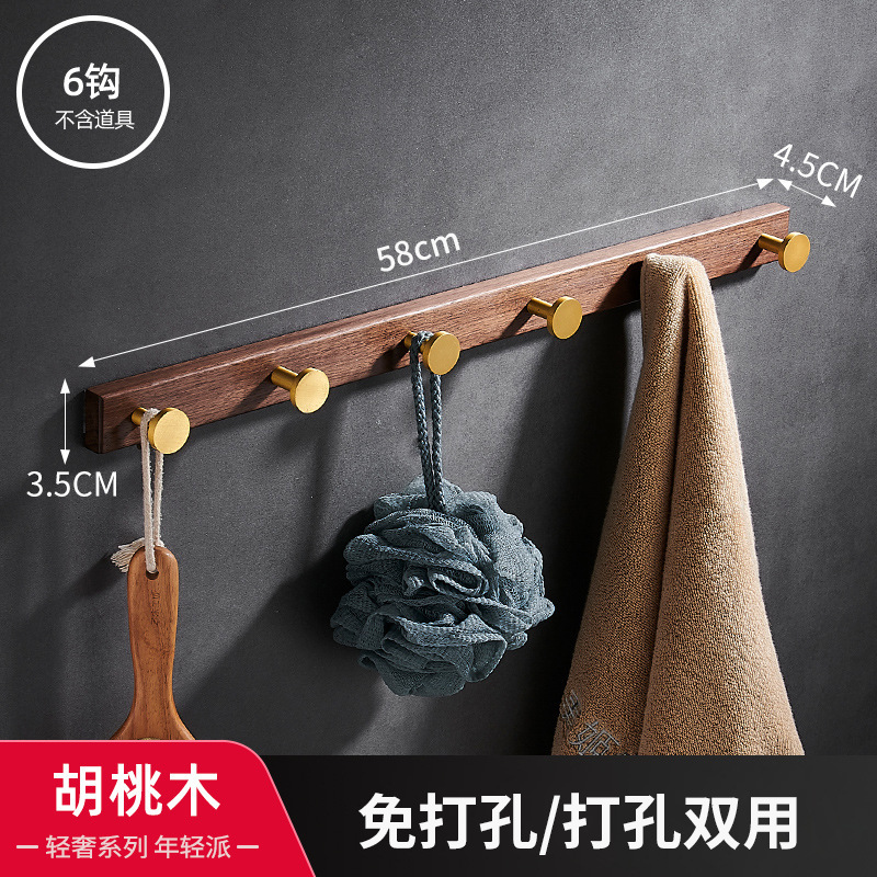 浴室黑胡桃木挂钩卫生间门后毛巾衣服挂钩衣帽钩排钩免打孔挂衣钩