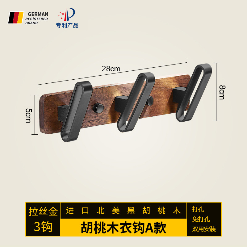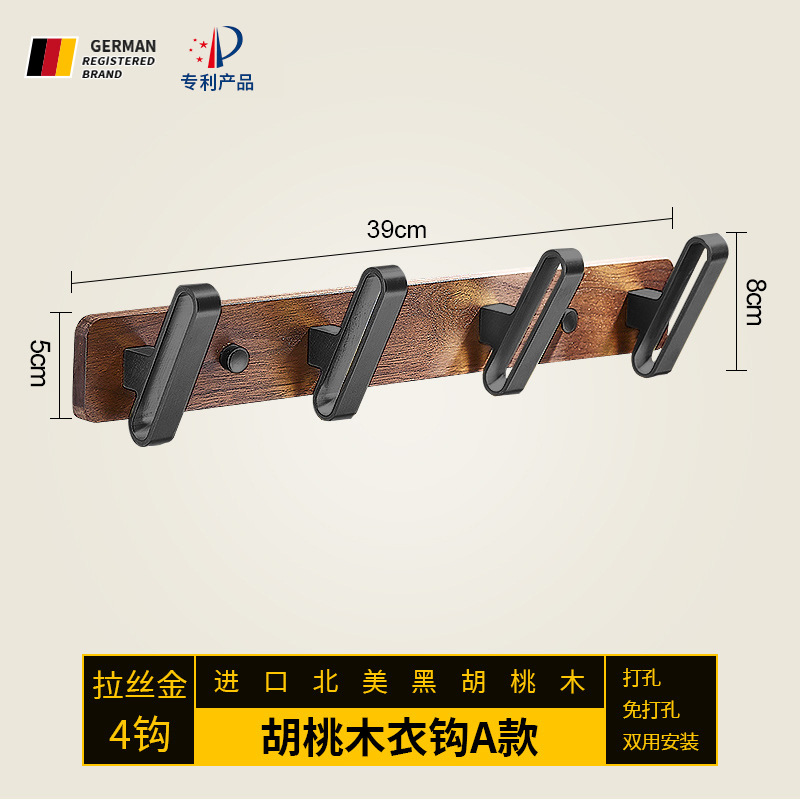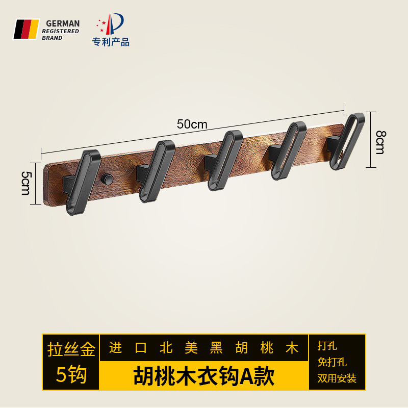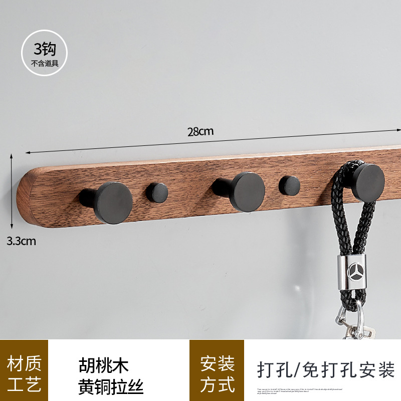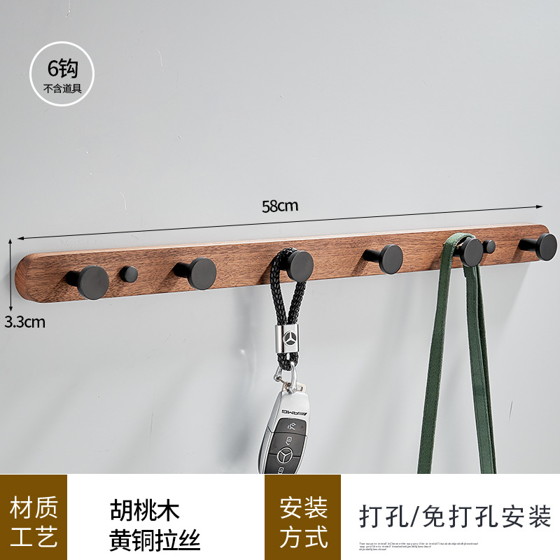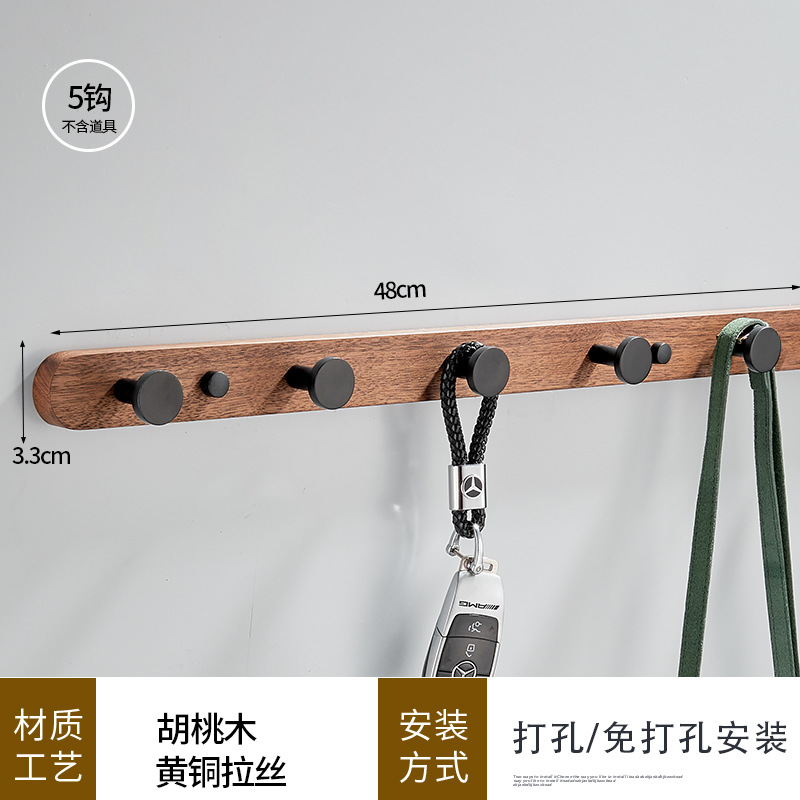 浴室黑胡桃木挂钩卫生间门后毛巾衣服挂钩衣帽钩排钩免打孔挂衣钩