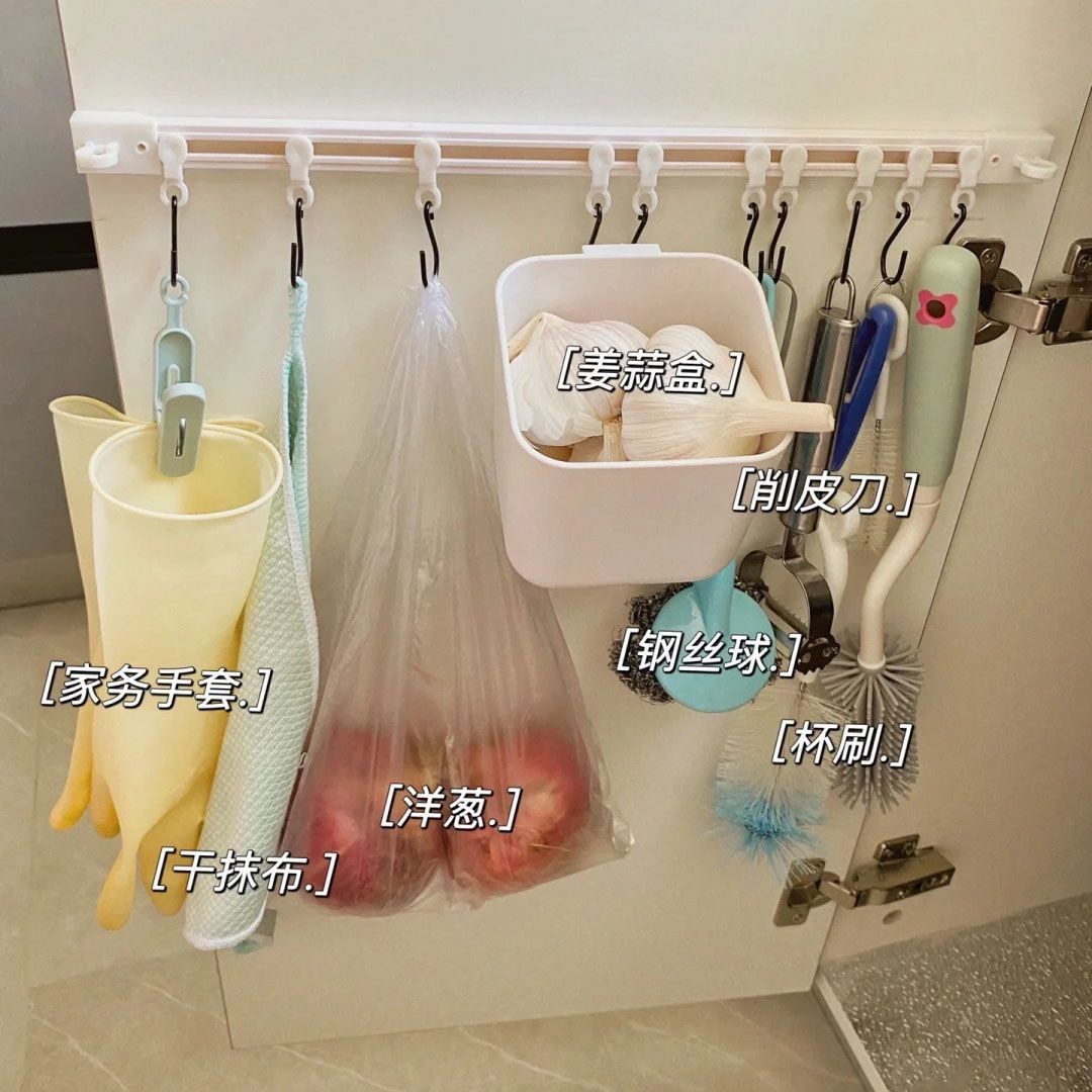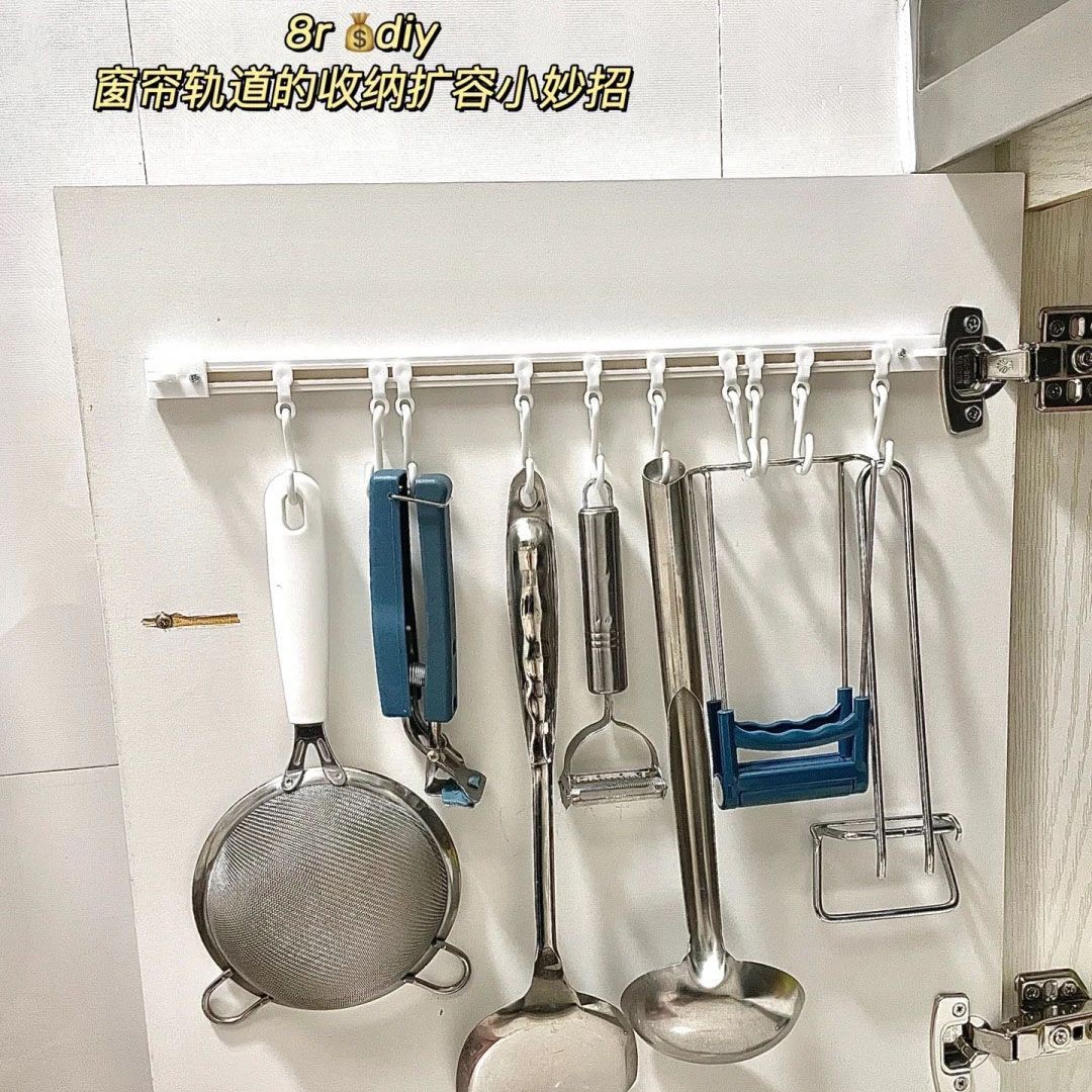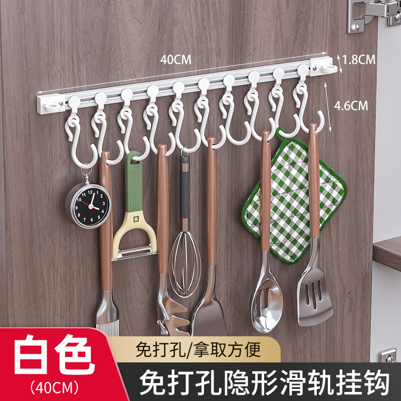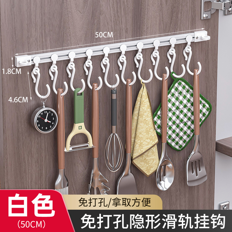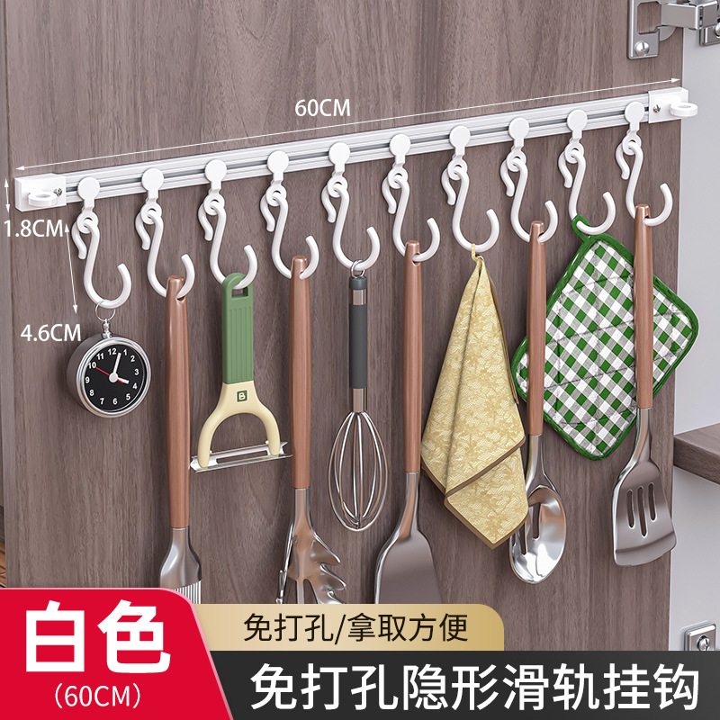 免打孔橱柜挂钩厨房排钩多功能可滑动长排贴钩轨道壁挂勾滑动S钩