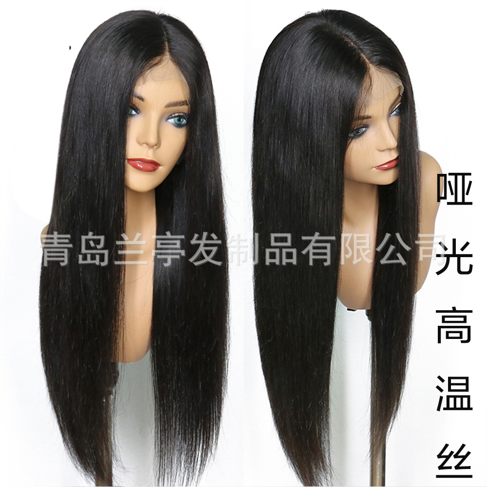源头工厂欧美假发哑光高温丝前蕾丝假发头套顺滑长直发一件代发
