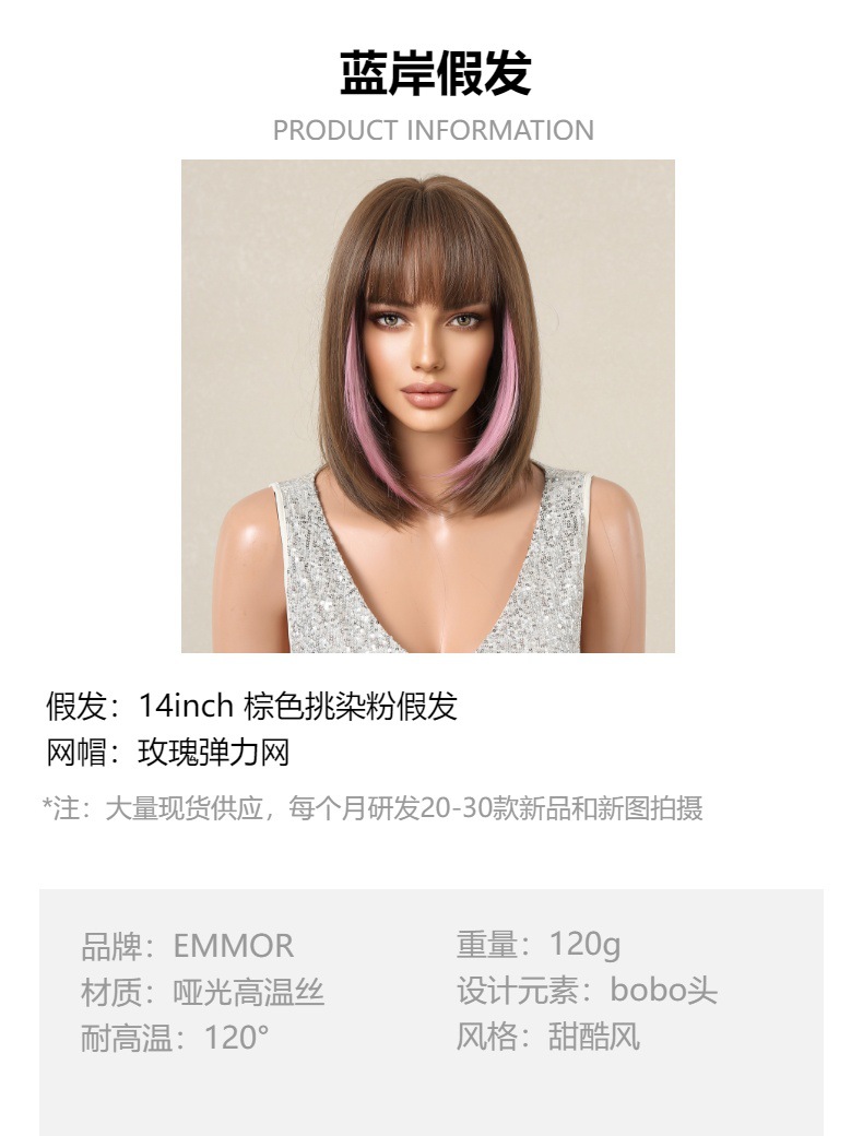 欧美新款齐刘海波波头女士假发 夏日轻薄透气多色可选假发全头套