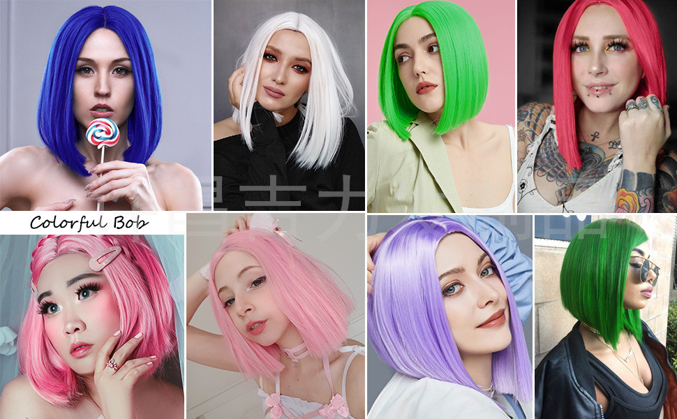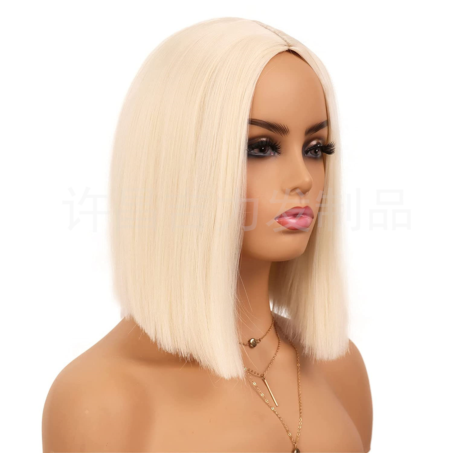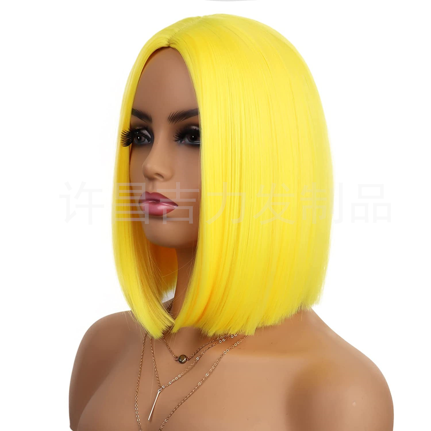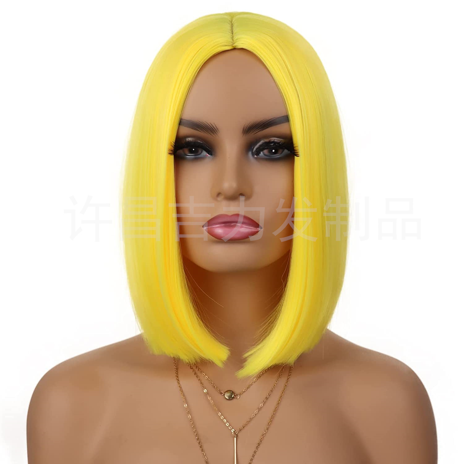 跨境欧美女士假发 头套 波波头中分无刘海齐肩短直发假发