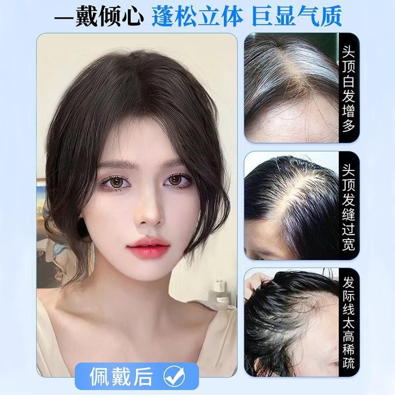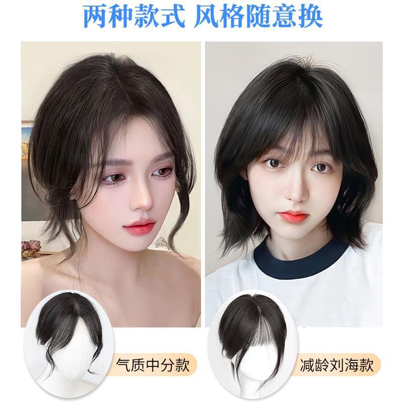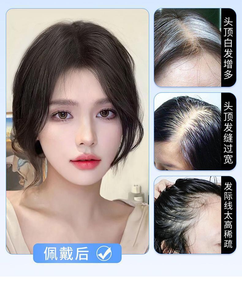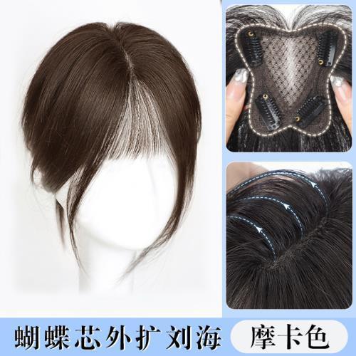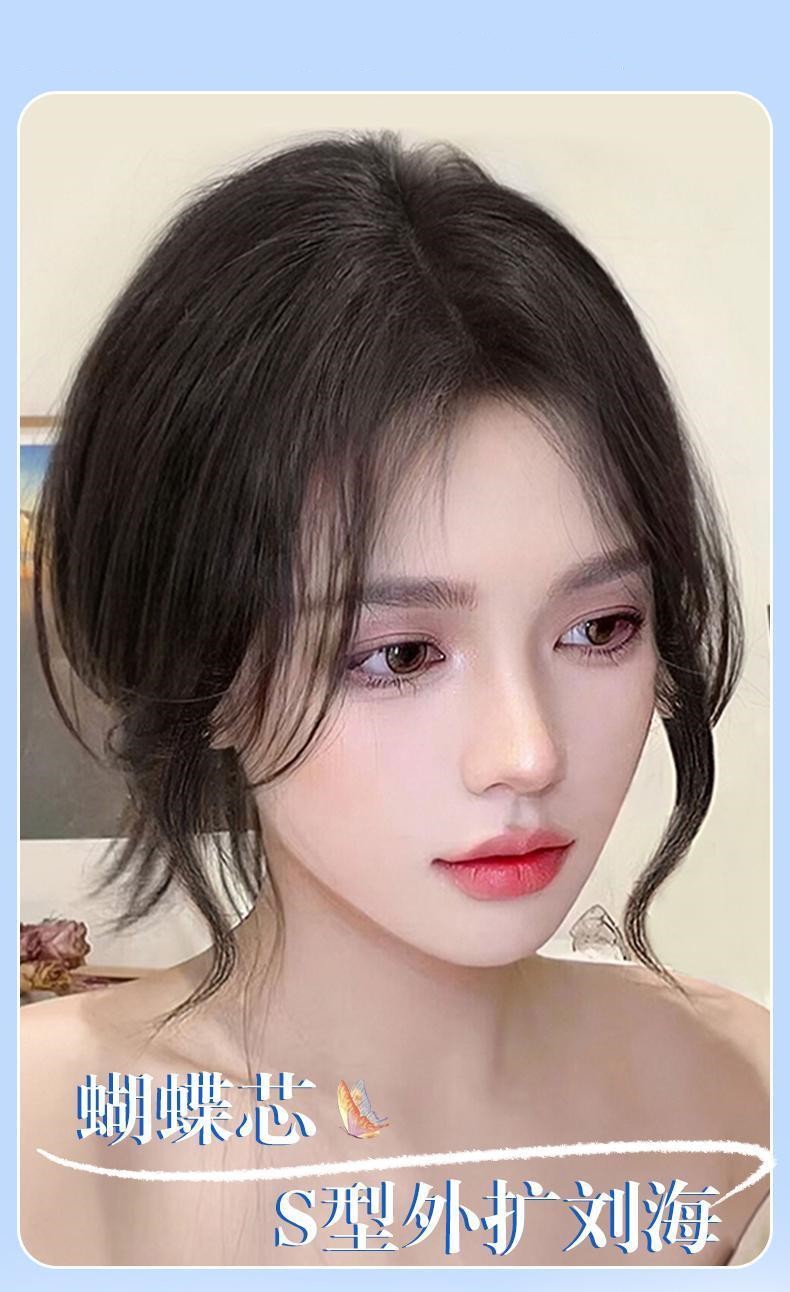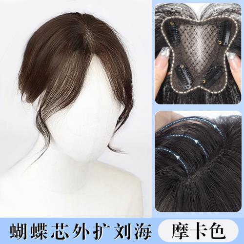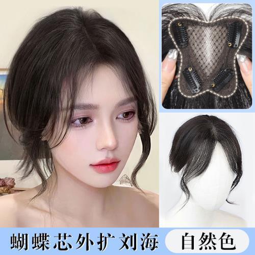 蝴蝶芯S型外扩刘海假发女真人发蓬松头顶肤色透气瑞士网补发片
