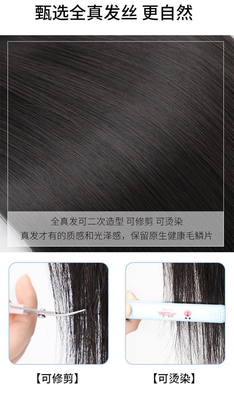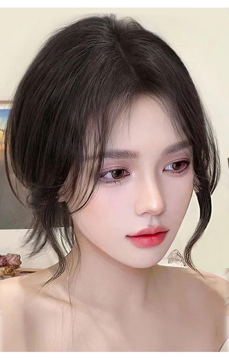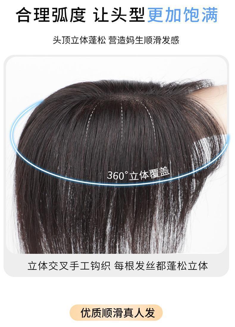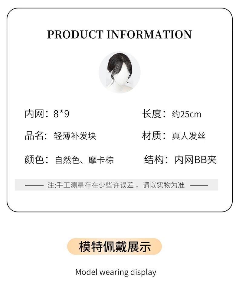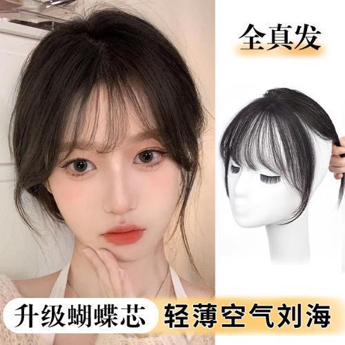 蝴蝶芯S型外扩刘海假发女真人发蓬松头顶肤色透气瑞士网补发片