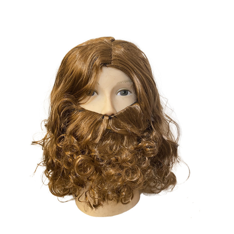 白色长卷发圣诞老人同款节日假发 欧美棕色圣诞COS假发短胡子批发