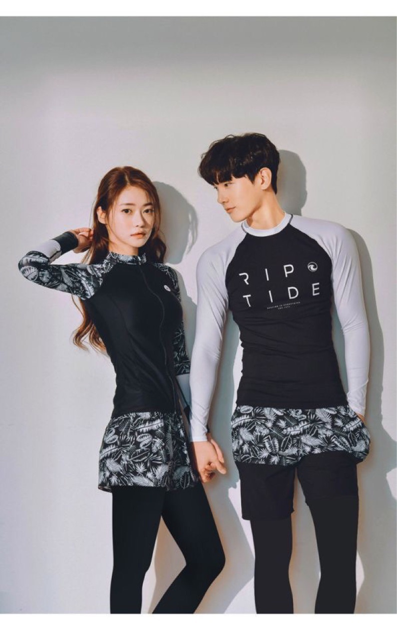 泳衣情侣款水上乐园分体平角两件套保守遮肚显瘦沙滩游泳装潜水服