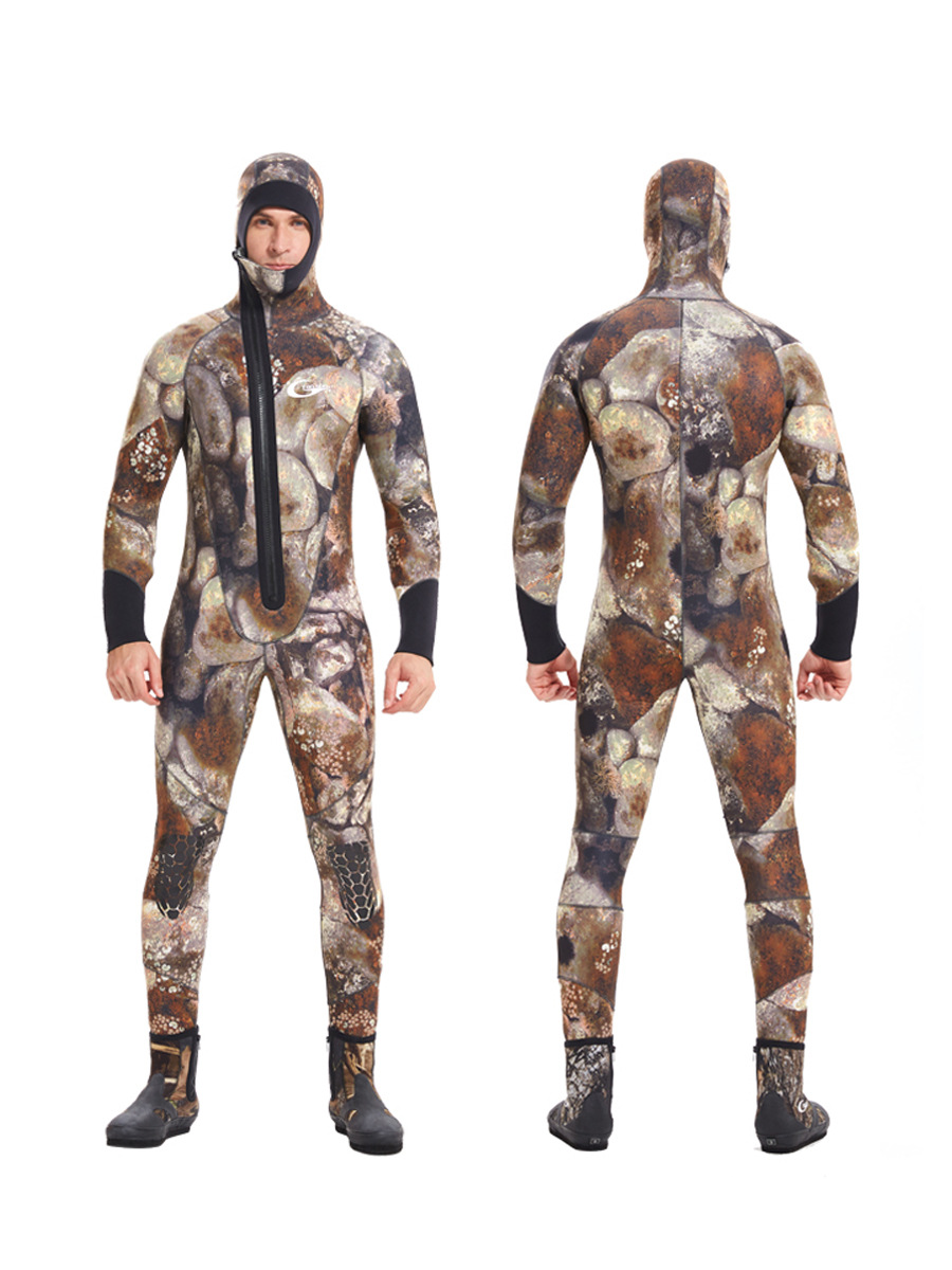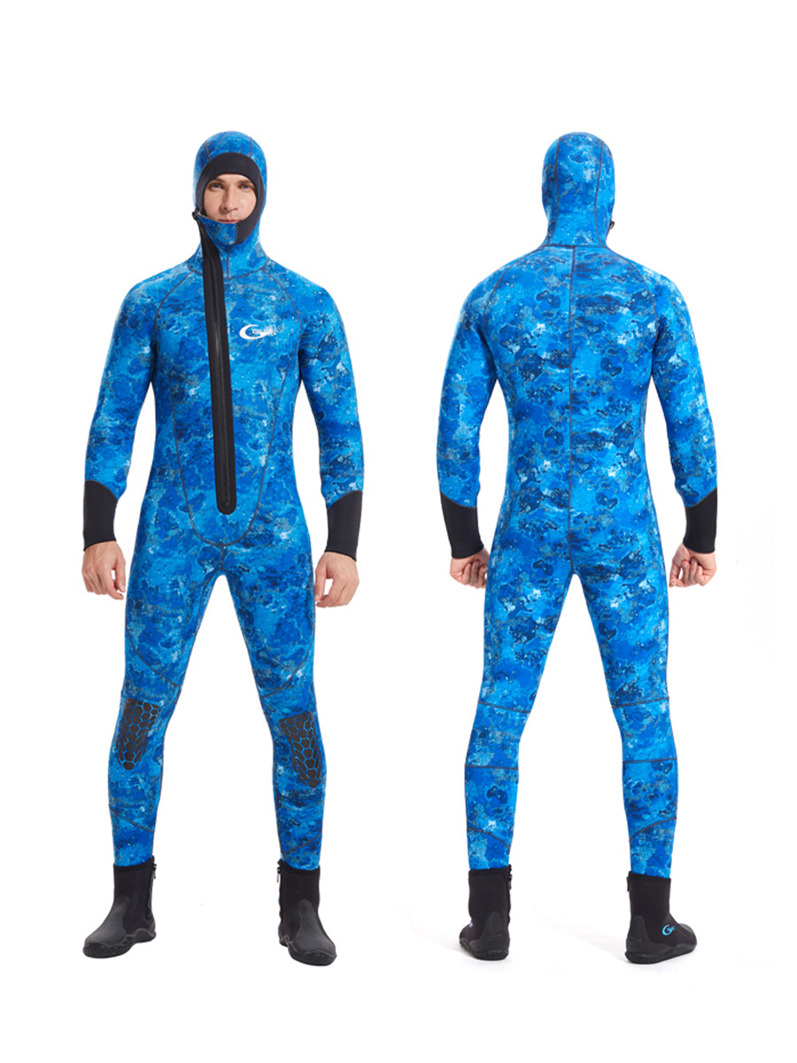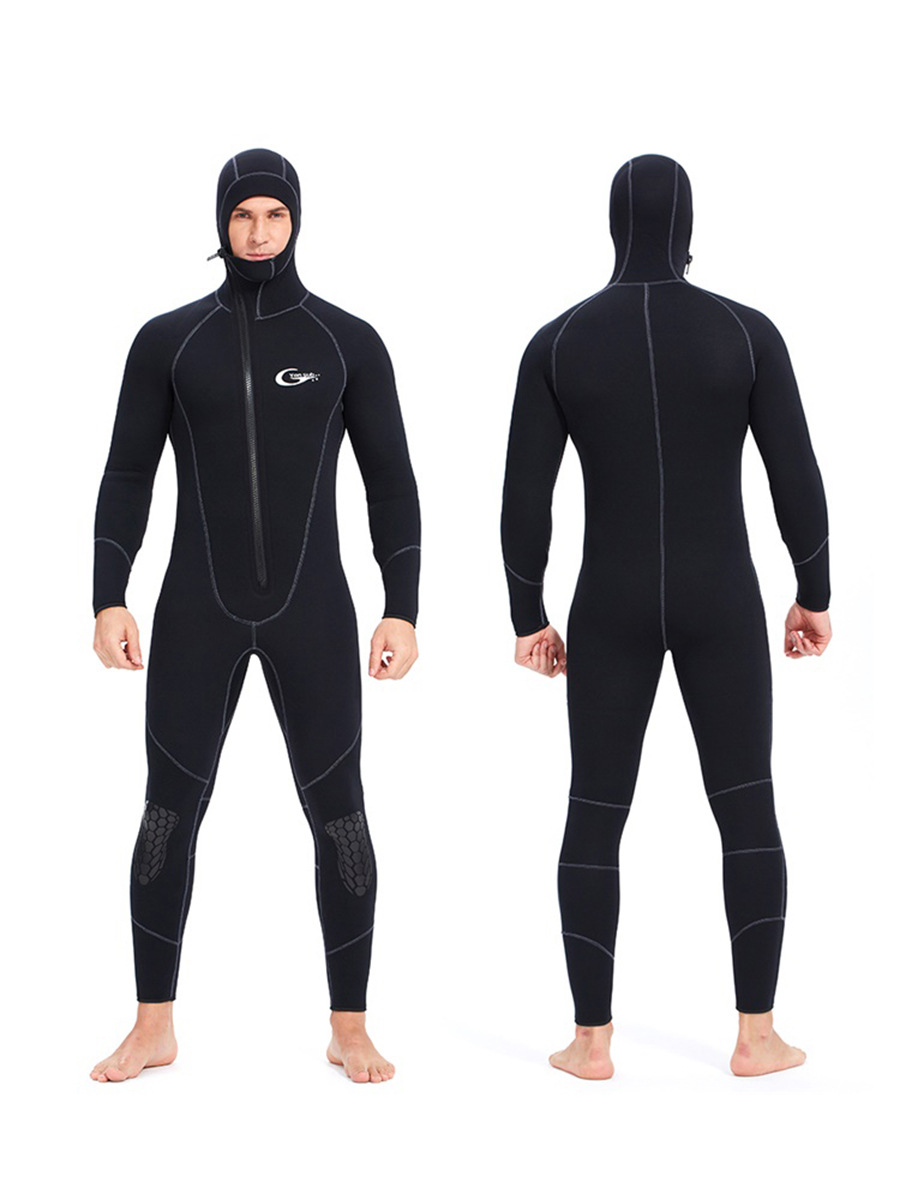 带帽保暖男女5mm潜水服连体前开拉链连帽防寒套装冲浪服潜水衣