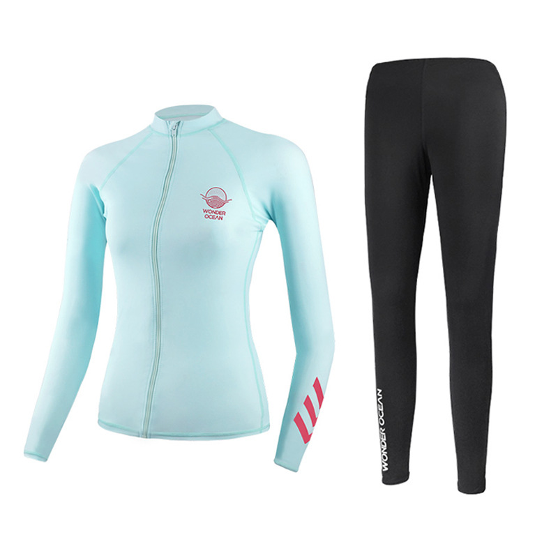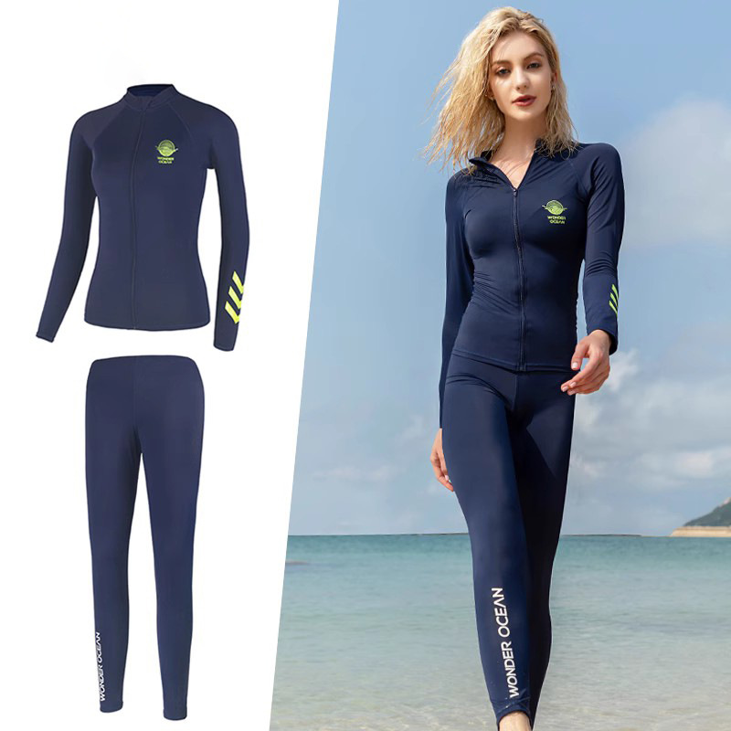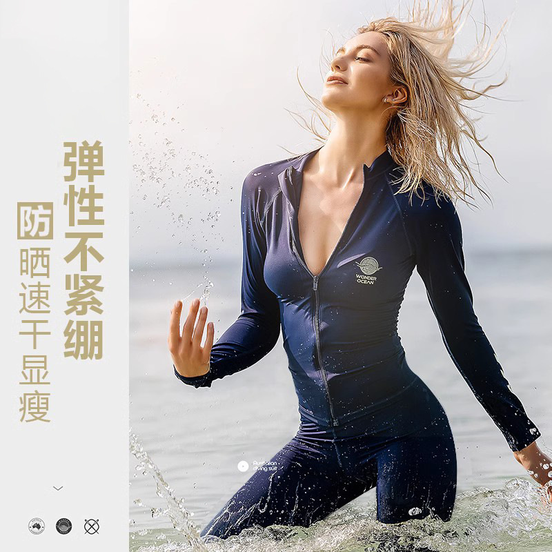 新款显瘦潜水服女长袖长裤防晒速干弹力冲浪浮潜泳衣分体水母服