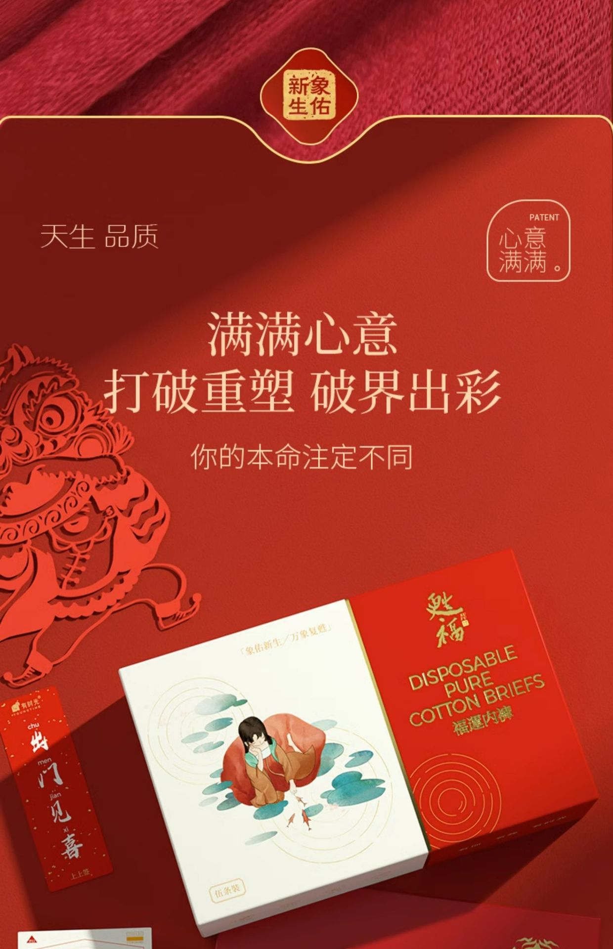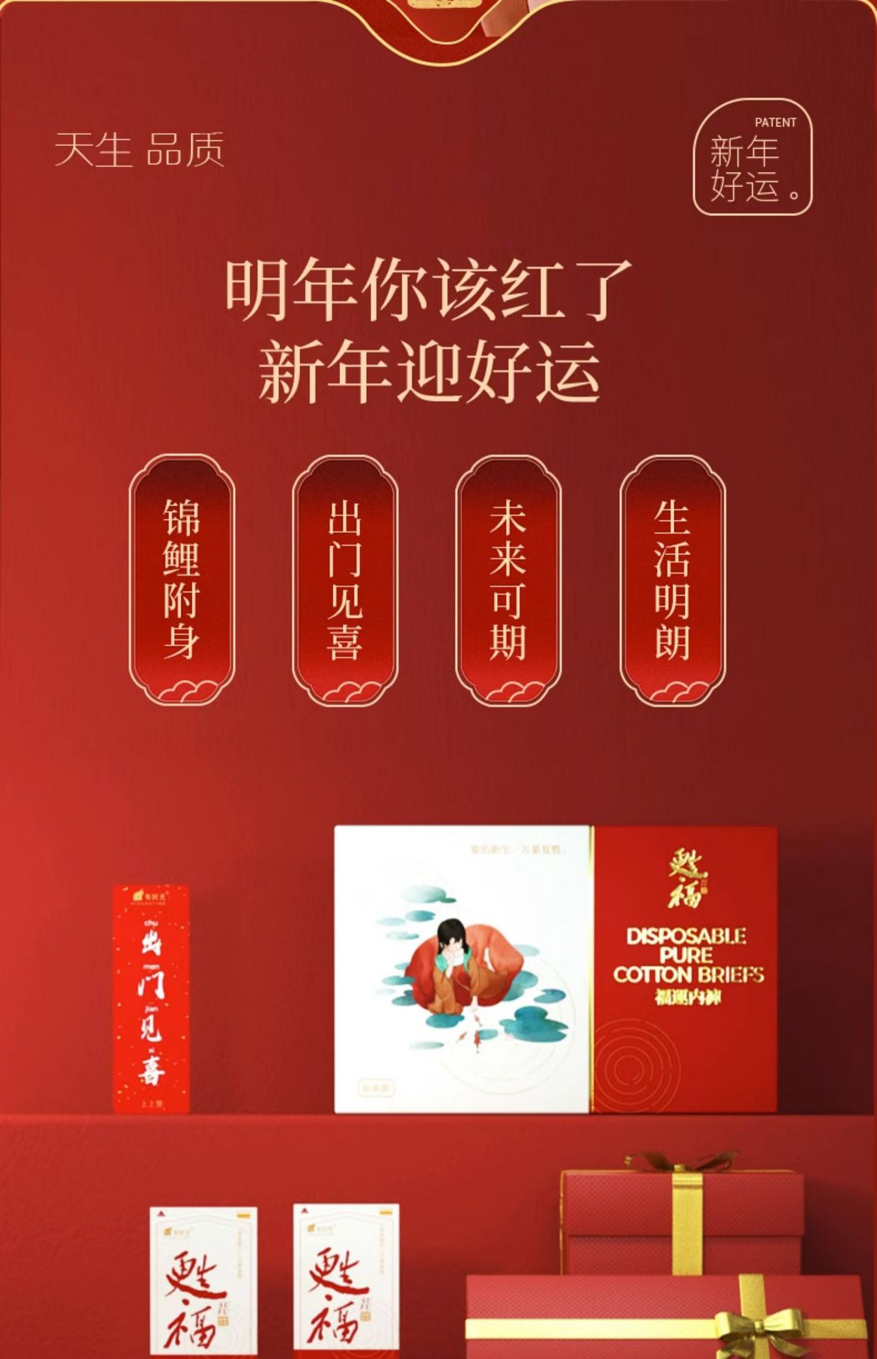 有时光本命兔年红色一次性内裤男士平角短裤四角女士全棉纯棉无菌