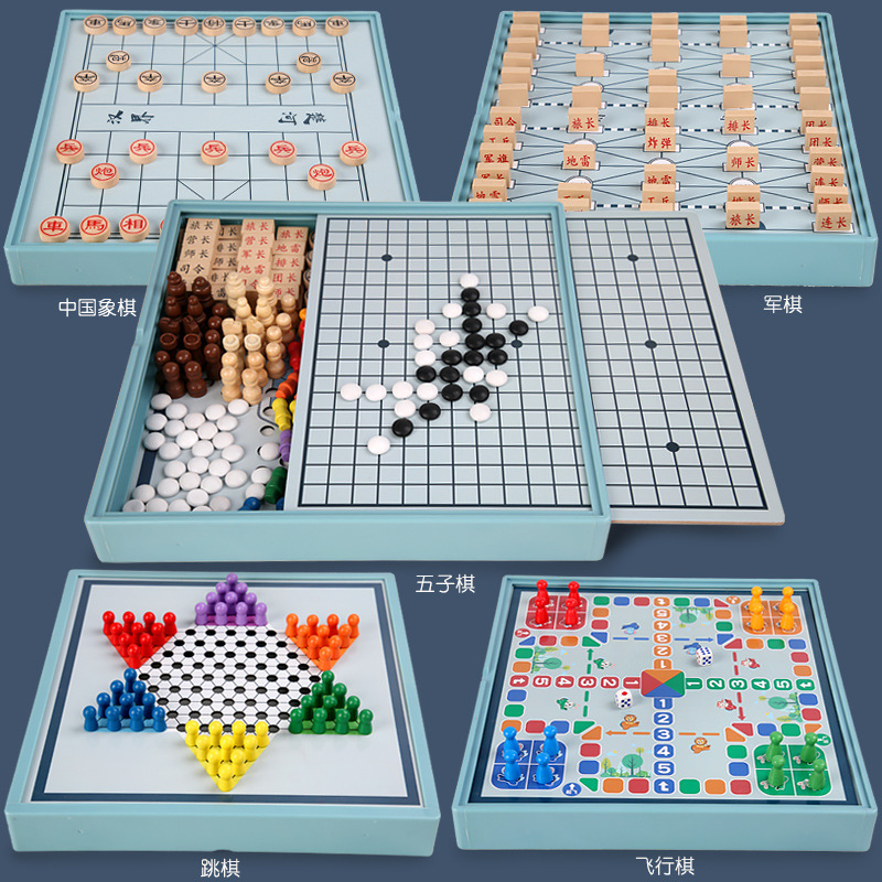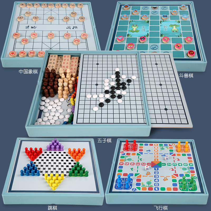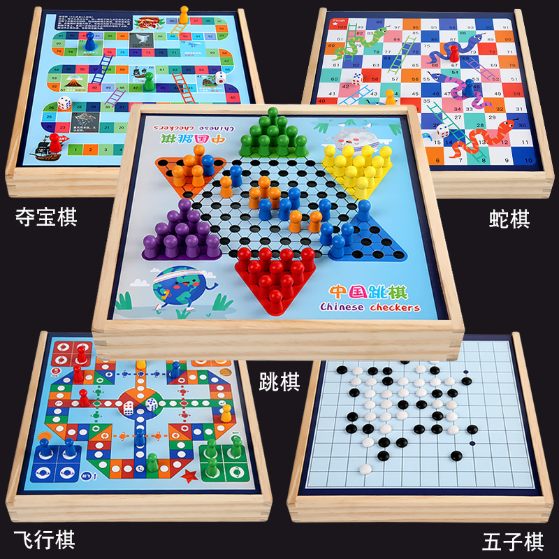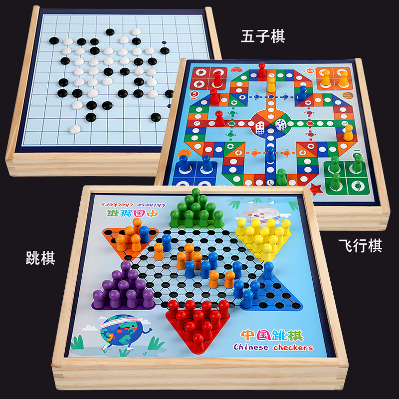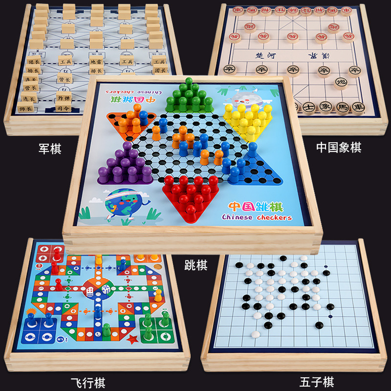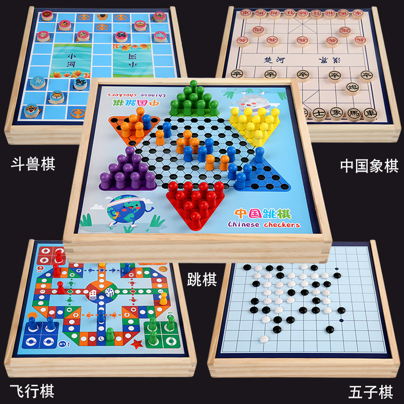 跳棋飞行棋五子棋斗兽棋多功能游戏棋儿童小学生益智木制礼物玩具