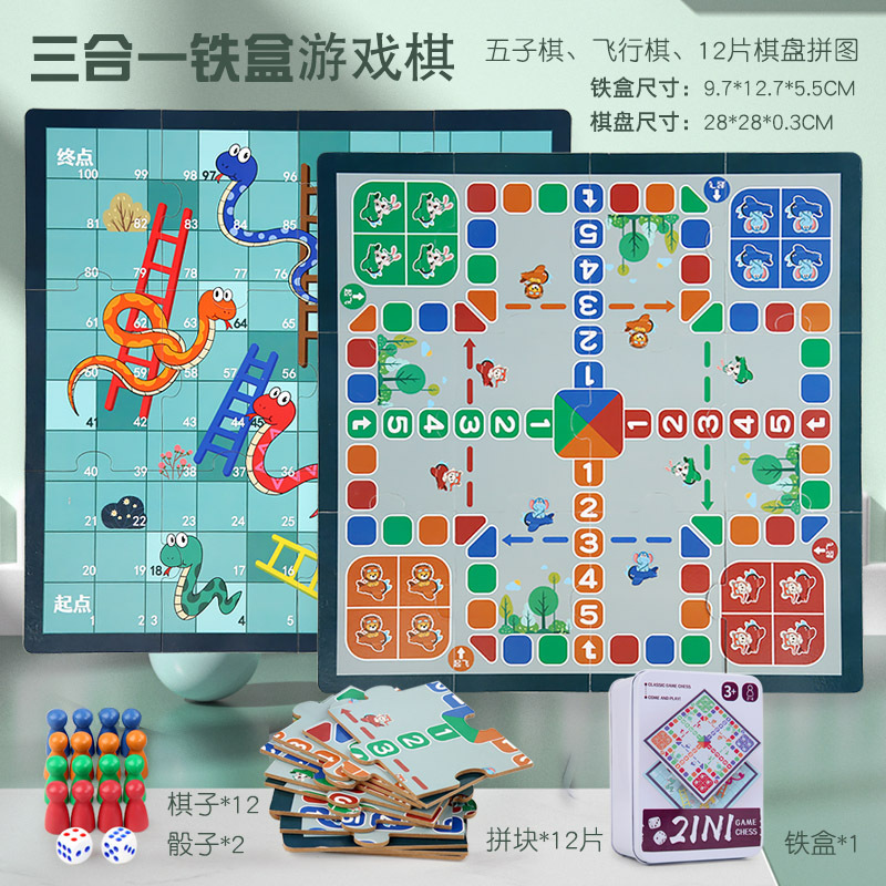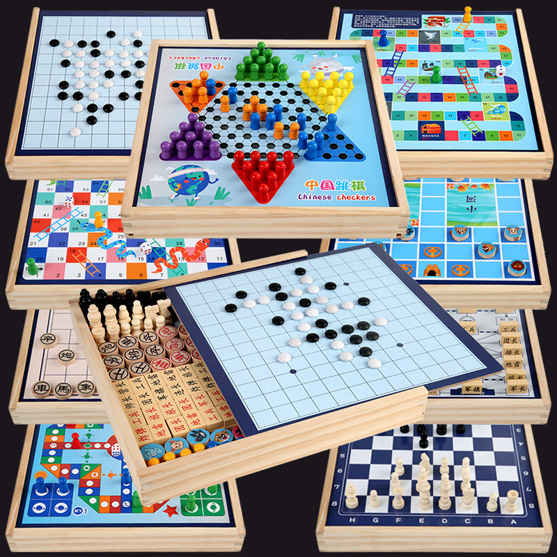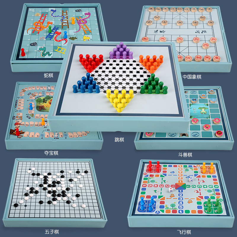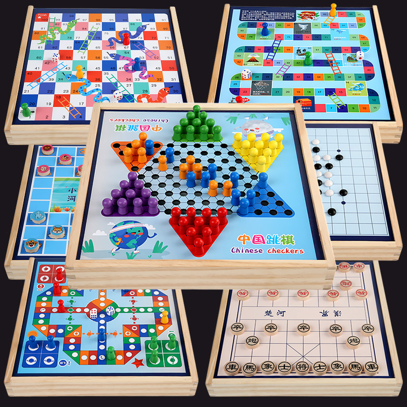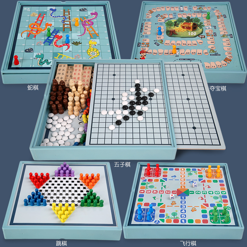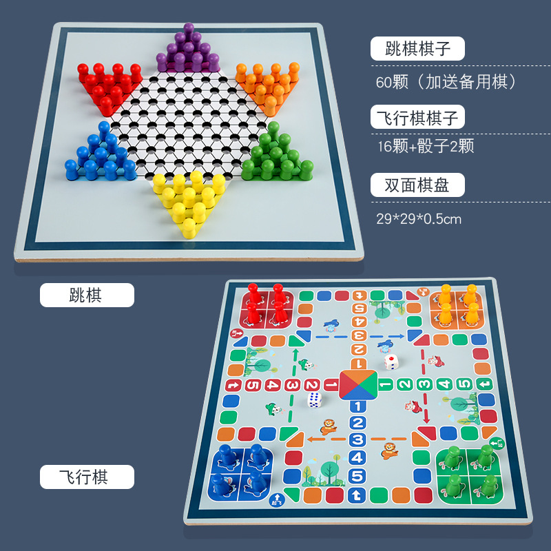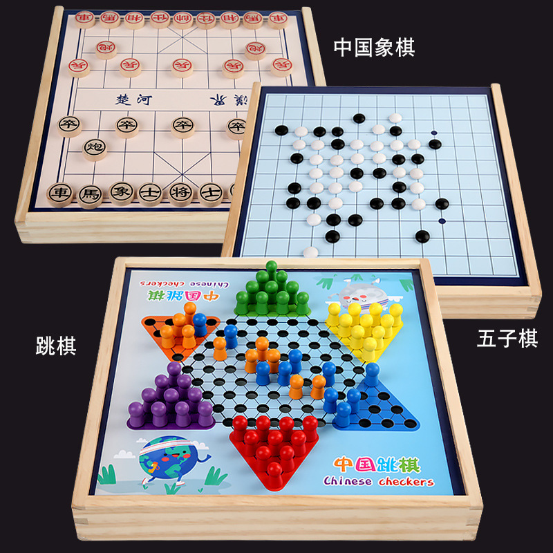 跳棋飞行棋五子棋斗兽棋多功能游戏棋儿童小学生益智木制礼物玩具