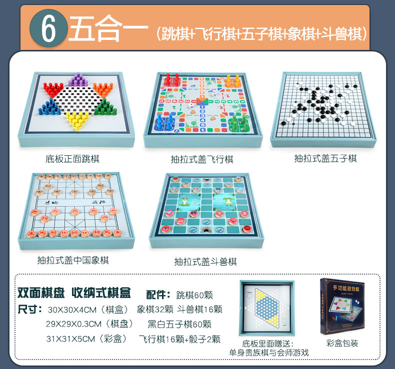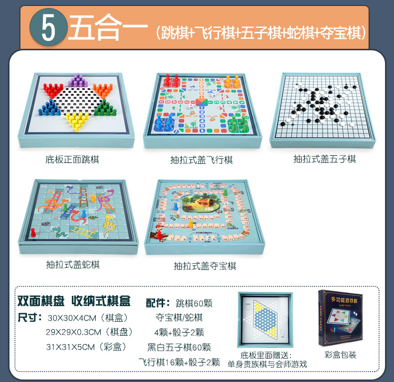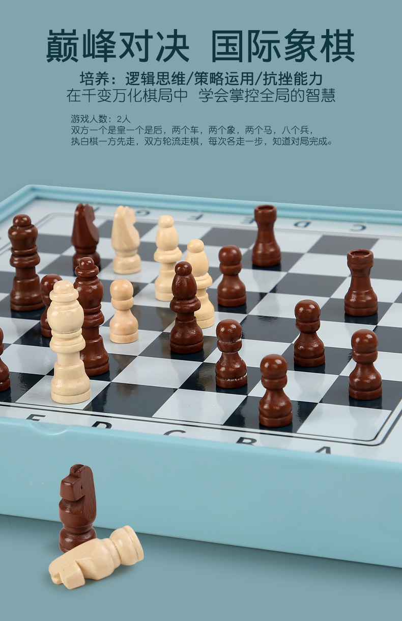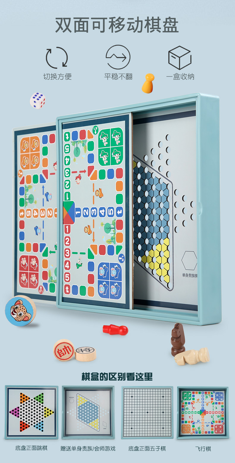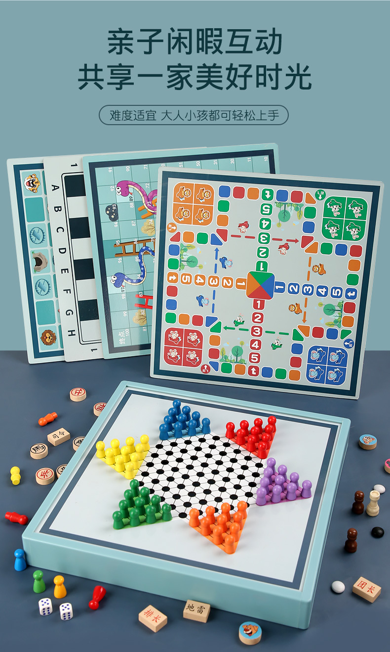 棋盘多合一木质象棋飞行跳棋五子斗兽亲子桌游儿童智力益智玩具
