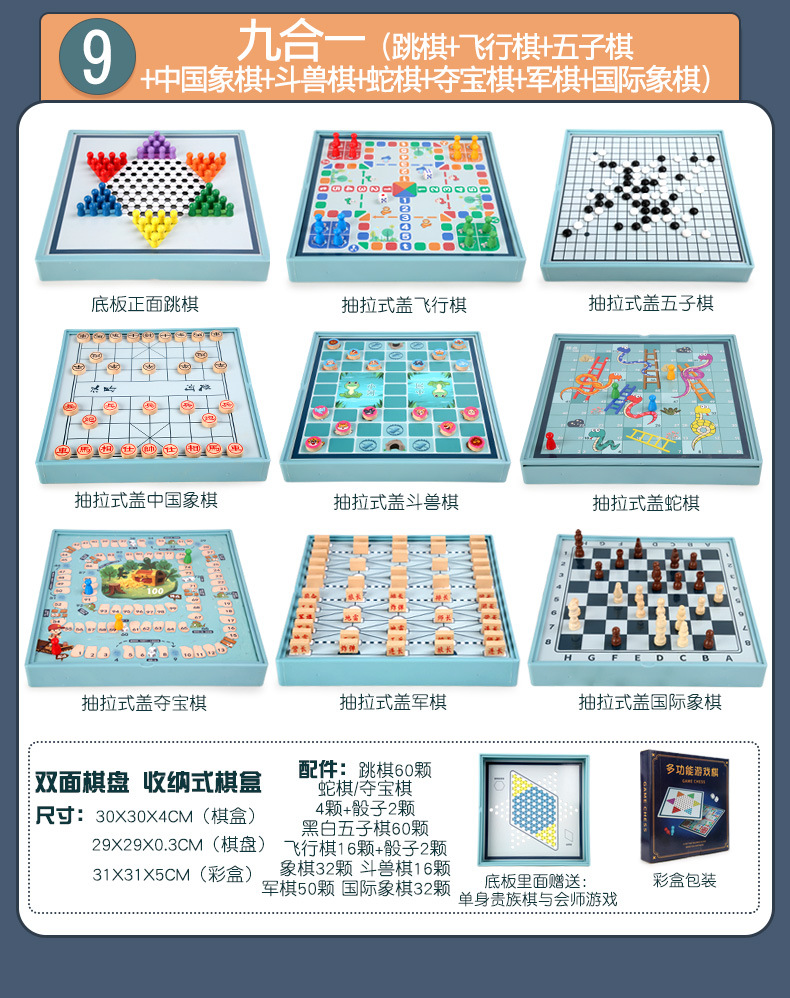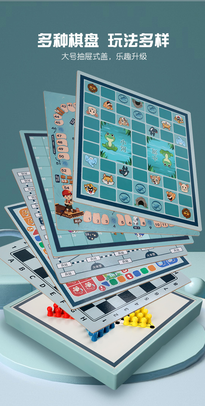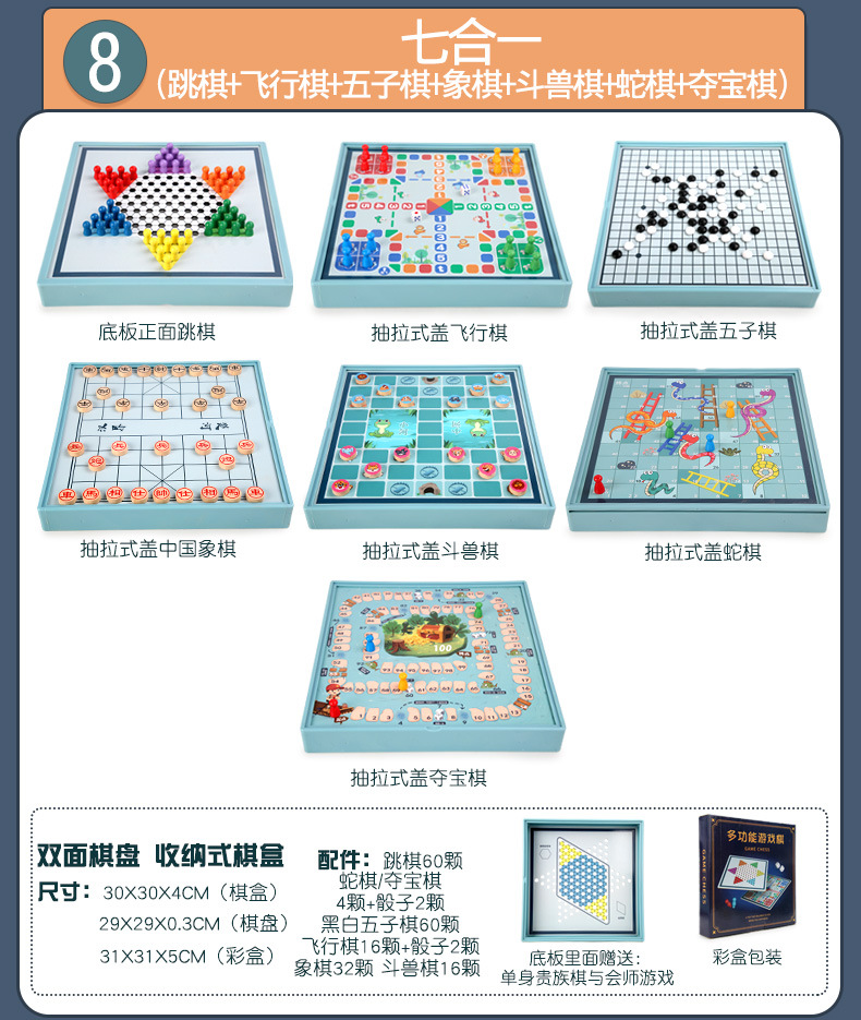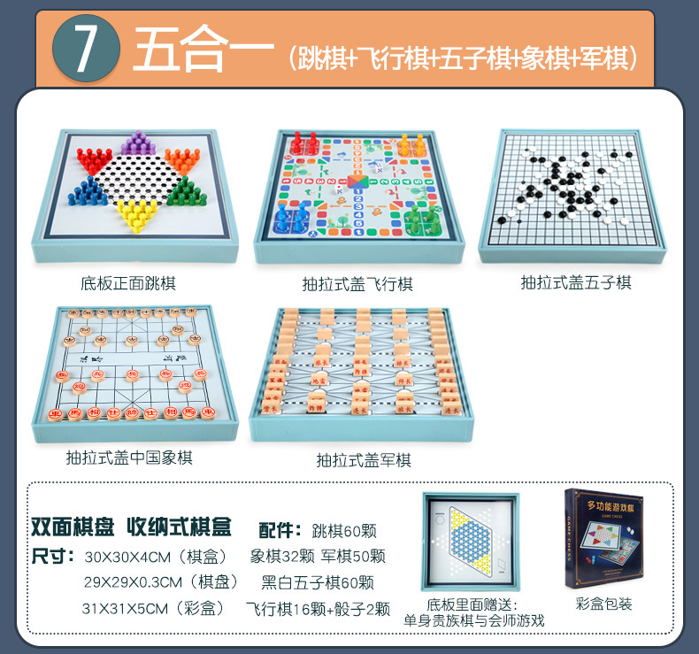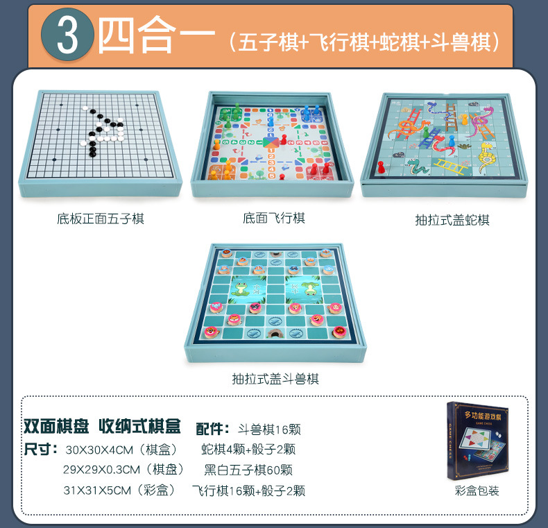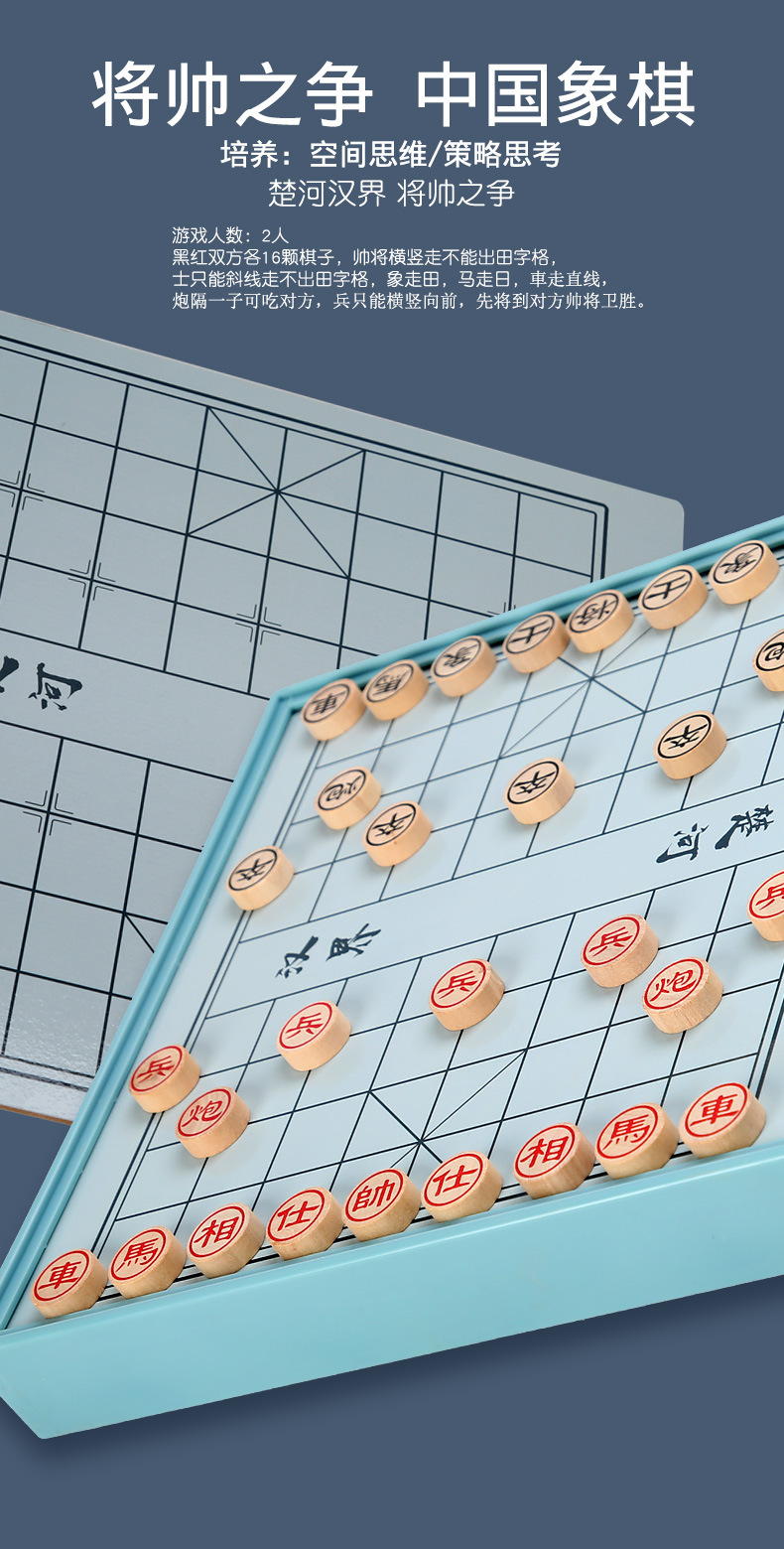 棋盘多合一木质象棋飞行跳棋五子斗兽亲子桌游儿童智力益智玩具